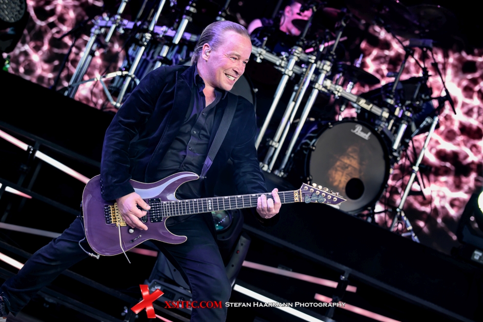 Weiter geht es mit „Storytime“ vom 2011er Longplayer „Imaginaerum“, gefolgt von „Tribal“, bei dem erstmals alle Register der Pyrotechnik gezogen werden. Die Songs werden zusätzlich mit optischen Einspielern auf den LED-Walls unterstützt, die bei nun untergehender Sonne verstärkt zur Geltung kommen. Floor Jansen zeigt sich auch als werdende Mutter in Top-Form und dominiert eindeutig die Szenerie. „Élan“, „Sleeping Sun“ und „Dark Chest Of Wonders“ sorgen in der Folgezeit für prächtige Stimmung im weiten Rund des Amphitheaters, das mit mehr als 6000 Fans komplett gefüllt ist. „How´s The Heart“ vom aktuellen Album liefert den Beweis, dass die neuen Songs sich perfekt in die Hits der Band einreihen, ein Grund dafür, dass NIGHTWISH über die Jahrzehnte hinweg trotz wechselnder Sängerinnen das Maß aller Dinge im Bereich des Symphonic Metal geblieben sind.
