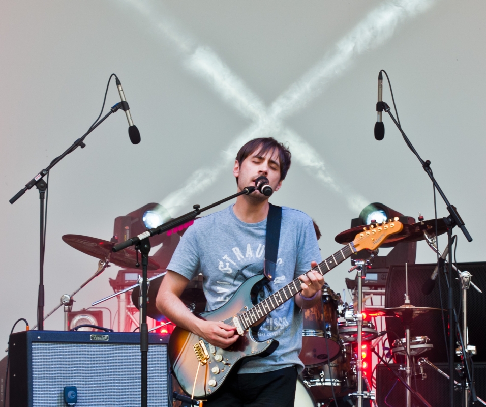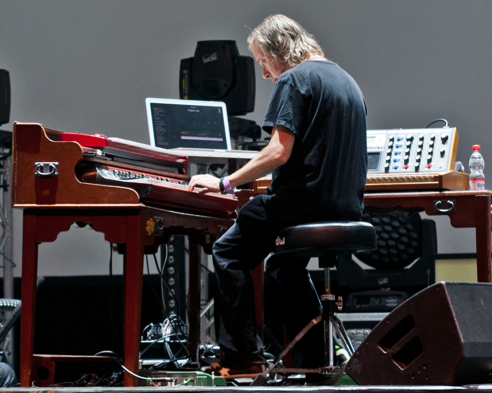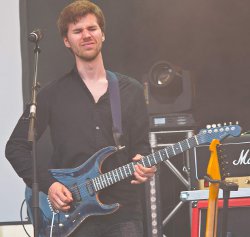 Eröffnet wird das Festival bei strahlender Sonne und angenehm luftigem Klima von einer vielleicht nur auf den zweiten Blick programmatischen Band für die Bandbreite der Veranstaltung von Traditionspflege bis hin zu wirklich progressivem Forscherdrang: Die frühen Canterbury-Einflüsse von SANGUINE HUM machen sich noch im weiten Dynamikspektrum ihrer neuen Stücke bemerkbar, was der gute Sound vor der Bühne – wie oben angedeutet bei nahezu allen Bands an diesem Wochenende gegeben – zusätzlich forciert. Ansonsten handelt es sich bei ihrer Musik um nachgerade programmatischen Neo Prog für Menschen, die bei Earl Grey mit Zucker und ohne Milch über ihre Befindlichkeit plaudern. Nichtsdestoweniger sind es die leider seltenen treibenden Parts, beispielsweise während des Longtracks “System For Solution”, durch die das sonnenbadende Publikum am frühen Nachmittag zum artigen Klatschen animiert werden. Die bisweilen zwischen synthetischen Loops und gediegenen Riffs changierenden Stücke scheinen oftmals zu behäbig zu plätschern, was vor allem an der Achillesferse an der Spitze der Combo liegt: Wo Joff Winks' helleres Timbre (auch mit Hinblick auf den Stil der Oxforder bieten sich Geddy Lee beziehungsweise neuere Rush als Vergleichspunkte an) auf den beiden Studioalben eigentlich gefällt, trägt es die nuancierten Stücke der Gruppe live zumeist nicht, weil es dem Frontmann sowohl an Ausdruckskraft als auch Stimmgewalt mangelt, wie sie die immerzu nuancierten Stücke erfordern. So verpuffen viele Feinheiten des prinzipiell sehr zugänglichen Materials, das sich zur Eröffnung des Festivals bei aller Kritik trefflich eignet. Dass das einzige Mitglied, das ein wenig Lockerheit versprüht, der sitzende Keyboarder Matt Baber ist, spricht allerdings bezüglich der ausbaufähigen Performance der Truppe Bände. Als Glanzlichter im Set erweisen sich das fragile „Derision“ sowie der früh gespielte Neuling „From The Ground Up“, eine in ihrer Verbindung von warmen Orgel-Sounds und subtil elektronischem Pluckern mit einem liedhaften Charakter (Stichwort zudringlicher Refrain) für den momentan Sound des Quartetts bezeichnende Komposition.