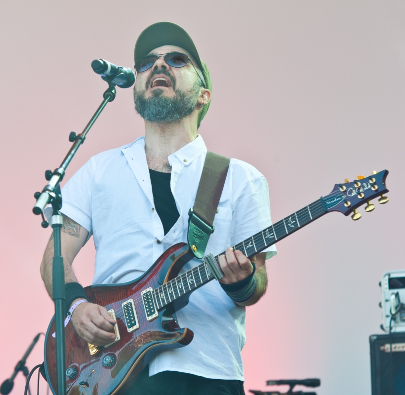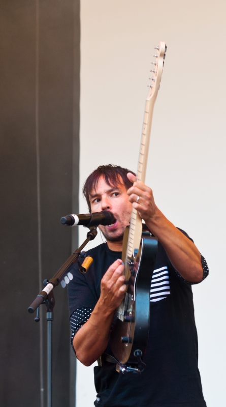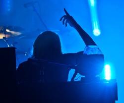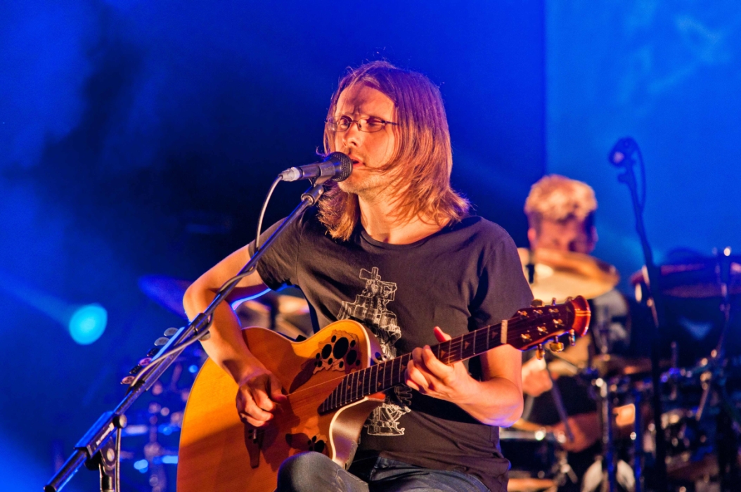 Zunächst aber taucht er kurz mit scherzhaft ausgestrecktem Mittelfinger beim heutigen Headliner STEVEN WILSON auf, weil dieser sich ebenso augenzwinkernd in einer Ansage über ihn äußert. Was soll man ansonsten über den als Retter des Progressive Rock und was nicht alles noch gefeierten Engländer schreiben? Seine Soloband, die heute eine 4.1-Soundanlage – quasi zur Rückenmassage – auffährt, ist zumindest vorübergehend deutlich spannender geworden als die folgerichtig pausierenden Porcupine Tree und hat mit „The Raven That Refused To Sing“ ein neues Genre-Konsensalbum veröffentlicht, von ihren in allen Aspekten (Musikalität, Show, Klang) denkwürdigen Konzerten ganz zu schweigen. Ein solches entspinnt sich nun auch auf der Freilichtbühne Loreley ausgehend vom naheliegenden Opener „Luminol“ mit dem Anhang „Drive Home“ entspinnt. Wilson wetzt barfuß über die Bühne, posiert und zappelt, setzt sich ans Keyboard und muss doch schnell wieder aufstehen, so mit sich selbst und seiner Kunst scheint er im Reinen zu sein, was sich längst auch im Verhalten der anderen Bandmitglieder widerspiegelt, denn bei aller Konzentration haben Tieftöner Nick Beggs und auch Guthrie Govan, hiervor abgesehen eigentlich eher ein typischer „Musiker für Musiker“, sichtlich großen Spaß, auch wenn Jazz-Ass Chad Wackerman die verhinderte Grinsekatze Marco Minnemann ersetzt. Dass der Schlagzeuger nicht wie ein Fremdkörper anmutet, dürfte sich von selbst verstehen. Generell setzt Wilson neben seinen