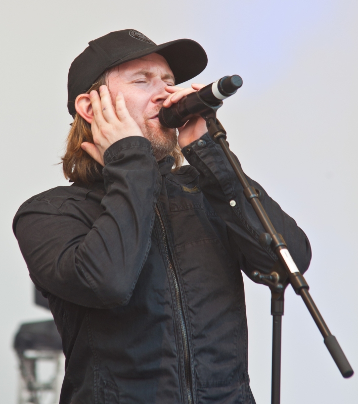 Erfreulich aufeinander eingespielt hingegen zeigt sich mit THE PINEAPPLE THIEF ein weiteres Produkt aus der Retorte: Das Geisteskind von Bruce Soord – immerhin bleibt er heuer alleiniges Gründungsmitglied – rockt und groovt tatsächlich halbwegs organisch im Gegensatz zu dem Eindruck, den seine Alben hinterlassen, was nicht zuletzt an Bassist Mark Harris liegt, dem Drummer Nick Lang mit kräftigem Punch die Bälle zuspielt, falls er nicht gerade als zusätzliche Gesangsstimme fungiert. Zudem mutet die Musik des Kleeblatts live wesentlich kompakter und weniger wie Art Rock als Alternative an, da die Gitarre ordentlich kracht und das experimentellere Material außen vor bleibt. Überwiegt somit der gute Eindruck, bleibt das Gesamtwerk aus bisher neun Alben – nicht alle repräsentiert mit dem gebotenen Dutzend Songs – in gewisser Weise bis heute ein Pastiche: ein wenig Koketterie mit den schwergewichtigen Label-Kollegen hier („Last Man Standing“), dort ein paar Singer-Songwriter-Anwandlungen, etwas Elektronik einer- und verschlungene Rhythmen („Shoot First“) andererseits, aber doch irgendwie immer noch keine eigene Identität – eine Einschätzung, zu deren Beleg man stellvertretend das ruhige Doppel aus „All The Wars“ und „My Debt To You“ anführen kann, nämlich quasi als Anathema für Arme. Dennoch, die Band bietet eine ansprechende Bühnenshow, ihr Kopf kommt ehrlich wie bissig daher, und unter den Anwesenden befinden sich nicht wenige Fans, welche die Vorstellung zwar nicht zum Triumphzug machen, aber zum ersten Mal an diesem Samstag Stimmung aufkommen lassen.