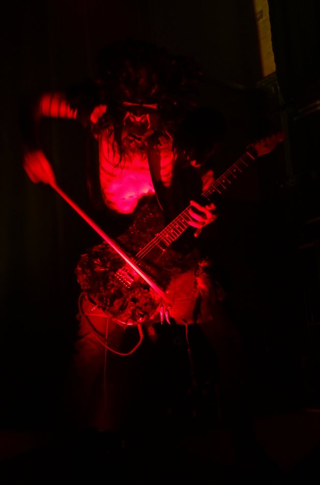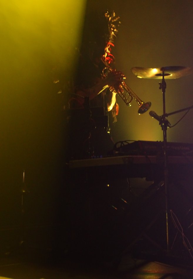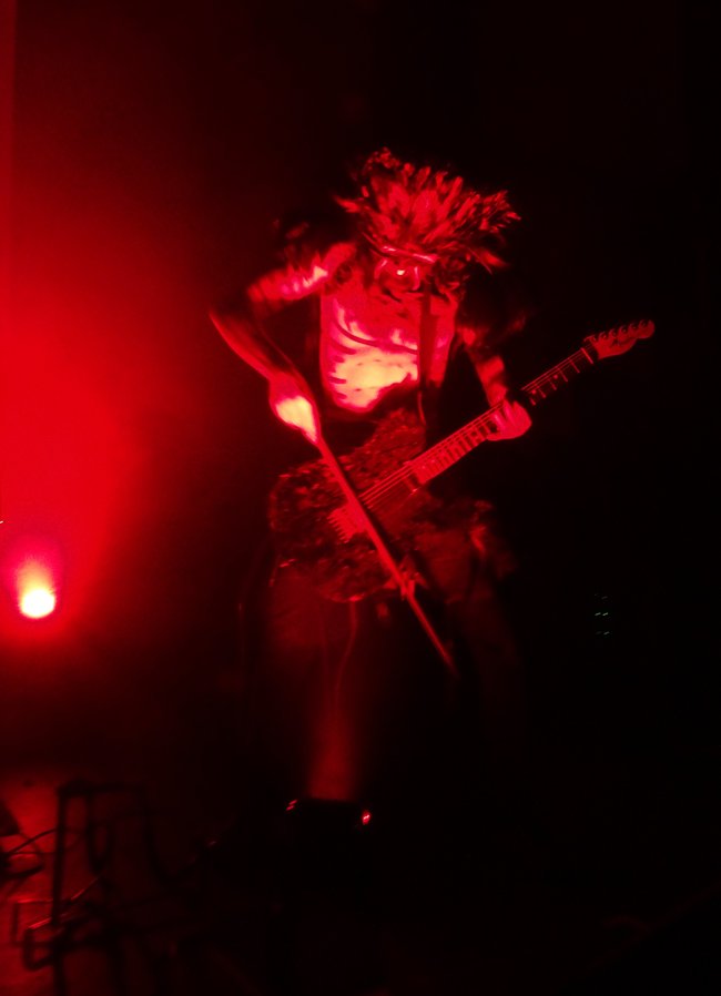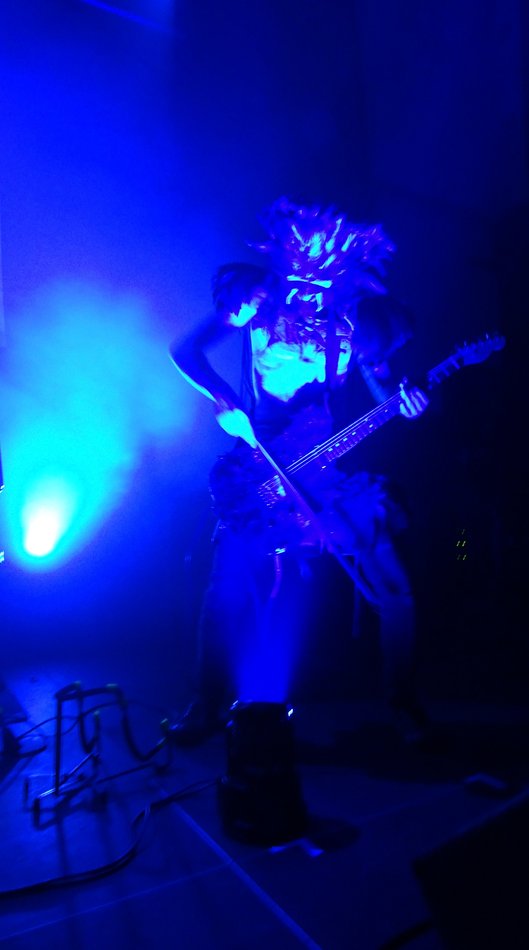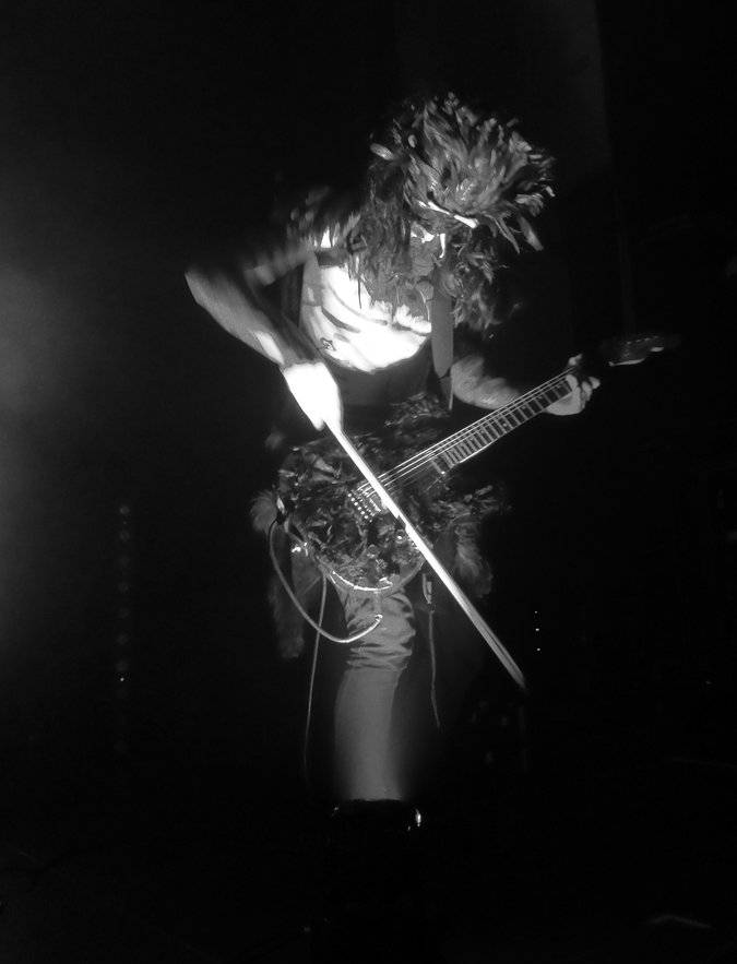 Die einzigen Gelegenheiten, bei denen man die Musiker mit ihren bemalten freien Oberkörpern, den Lendenschurzen und natürlich den mirakulösen Masken, oder besser: Federhelmen, deutlicher sieht, sind die raren Momente, wenn Rôka Skulid und Loki aufstehen, um die Gitarre mit einem Bogen zu streicheln bzw. Trompete zu spielen.