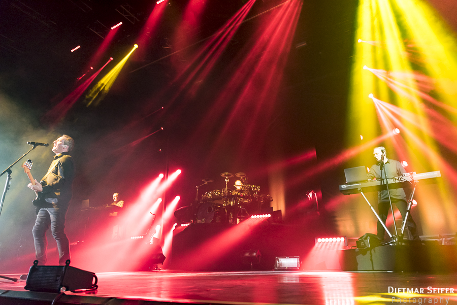 Dass OMD ihr Programm abspulen würden war eigentlich klar. Schließlich waren die Fans genau deshalb nach Düsseldorf gekommen. Mittels einer durchaus als pompös zu bezeichnenden Lichtinszenierung wurde in Düsseldorf eine große 80’er Synthie-Pop Party gefeiert.