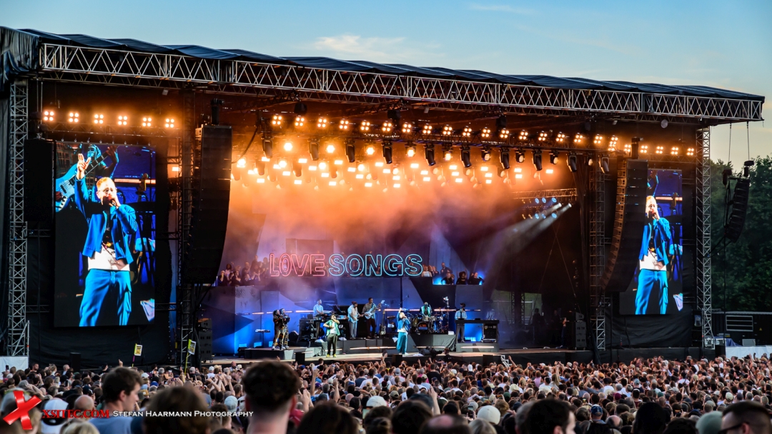 Im Anschluss geht die Post dann so richtig ab: „Augenbling“, im Original von SEEED ist ein toller Einstieg in die Dance-Passagen, bevor mit „Disney“ und „Toscana Fanboys“ zwei weitere Songs des aktuellen Albums „Lovesongs“ auf dem Programm stehen, die die Stimmung im weiten Rund weiter hoch halten und sich perfekt in die Setlist einfügen.