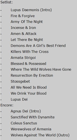 Nach „Werewolves Of Armenia“ ist endgültig Schluss und mit dem Outro „Wolves Against The World“ werden die POWERWOLF-Jünger in die unwirtliche, kalte Düsseldorfer Wolfsnacht entlassen.