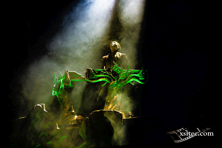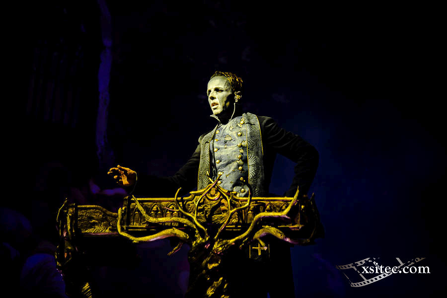 Bombastisch ist auch der glasklare Sound, der aus der PA hämmert. Neben den in Laufe der Show wechselnden Kulissen, die die sakrale Atmosphäre manifestieren, sorgen die immer wieder eingesetzten