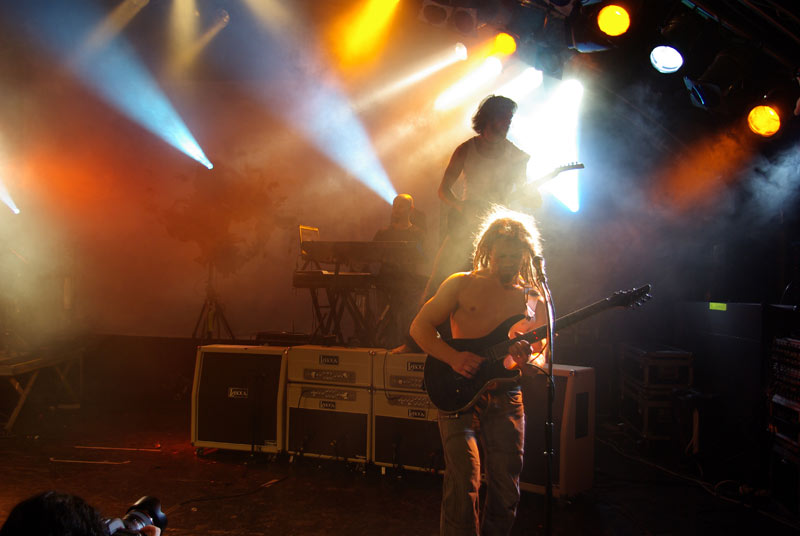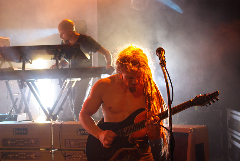 auf eine bestimmte Schaffensperiode, sondern wildert sich vom Debüt-Album ausgehend („Winning A War“, „People Passing By“) durch die Bandgeschichte und spielt auch das live ungeheuer wuchtig rüberkommende „Diffidentia (Breaching The Core)“ vom viel geschassten Konzeptalbum „Be“. Überhaupt legen PAIN OF SALVATION an diesem Abend viel Wert auf Rock und Härte. Der Gitarrensound brät nackenbrechend aus der PA, was leider Gildenlöws Stimme teils bis zur Unhörbarkeit in den Hintergrund drängt. Das ist insofern besonders dramatisch, weil der zutiefst emotionale Gesang ein Alleinstellungsmerkmal der Band ist, das an diesem Abend im Metal-Gewitter untergeht. Entweder ist der Mann am Mischpult besoffen oder es gibt tatsächlich technische Probleme, denn irgendwann beginnt ein Roadie am Mikrofon-Anschluss herumzufummeln, was leider keinen Effekt hat. So kann Gildenlöw seine Gesangstalente nur in den ruhigen Momenten durchschimmern lassen.