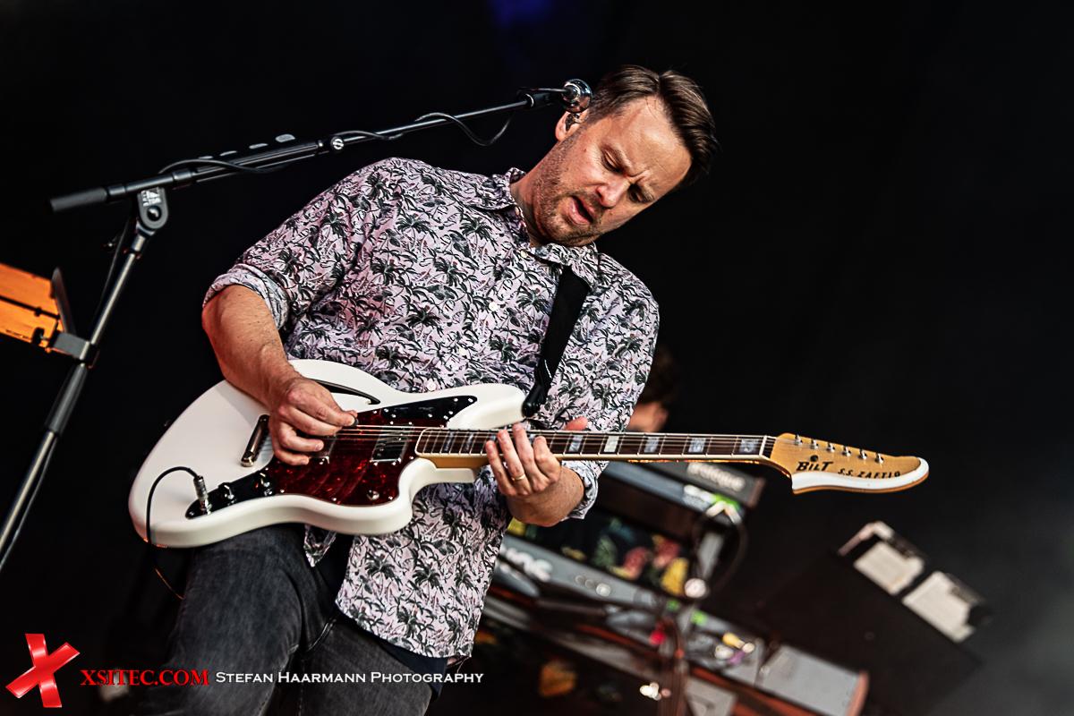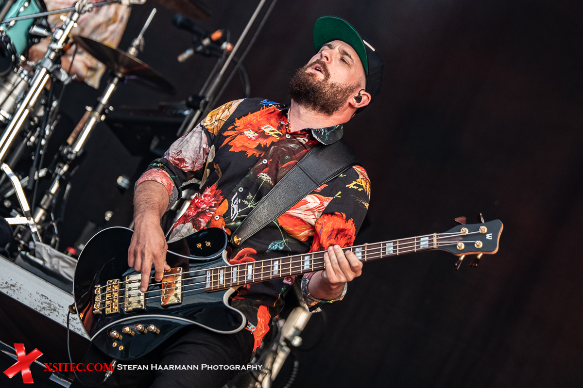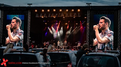 Neben Johannes Strate greifen seine Bandkollegen Kristoffer Hünecke (Gitarre), Niels Kristian Hansen (Gitarre) und Jakob Sinn (Drums) zu den Instrumenten, Chris Rodriguez komplettiert am Bass das eingespielte Live-Line-Up, doch auch der Keyboarder, der als Vertretung eingesprungen ist, macht seine Sache ausgezeichnet. Während die Sonne langsam an Strahlkraft verliert, steigt die Stimmung in der Arena mit jeder Minute. Die Fans hält es schon lange nicht mehr auf den Sitzen, viele haben sich auf das Dach ihrer Auto gesetzt, andere auf die Motorhaube. Festivalstimmung in Zeiten von COVID-19.