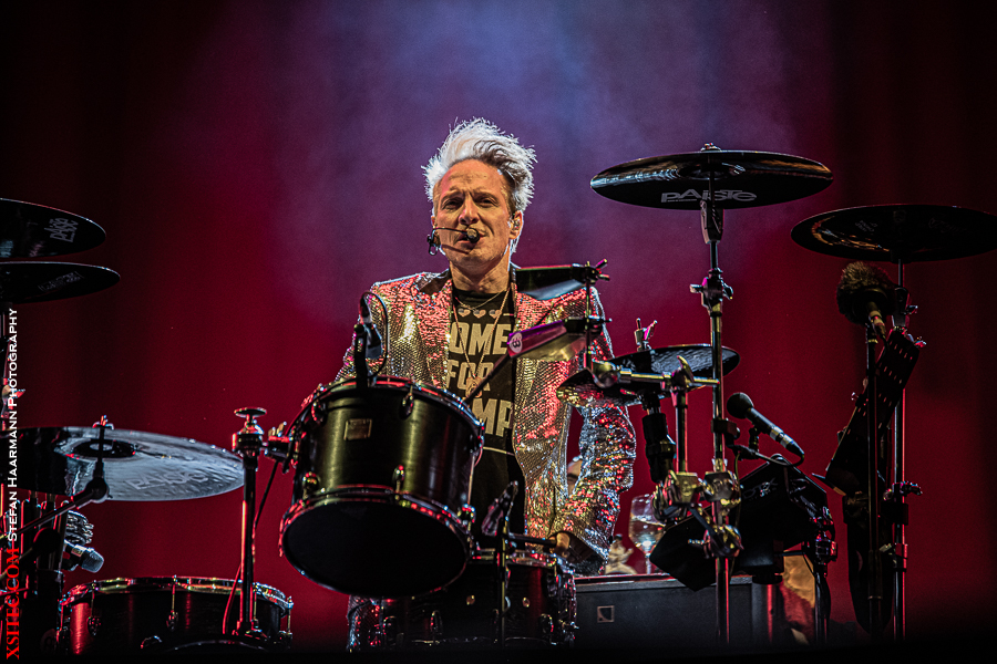 Danach geht das Stage-Hopping weiter, denn am anderen Ende der Start-Ziel-Geraden der Rennstrecke haben sich auf der BECK´S CRATER-STAGE STARSET angesagt. Die Combo um Frontmann Dustin Bates kommt an diesem Tag nicht - wie noch wenige Monate zuvor in der Live Music Hall Köln – in Raumanzügen und mit LED bestückten Helmen auf die Bühne, sondern überrascht in neuem Outfit, das an den Hollywoodstreifen „Mad Max II“ erinnert, die Fangemeinde. Die Intensität des Nebels geht indessen konform mit der Performance, die ab der ersten Sekunde mitreißend und fesselnd ist. Cello und Geige - bzw. die damit bewaffneten Grazien - scheinen allerdings wohl nur aus optischen Gründen am Start zu sein, akustisch wahrnehmen kann man die Saiteninstrumente nicht.