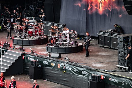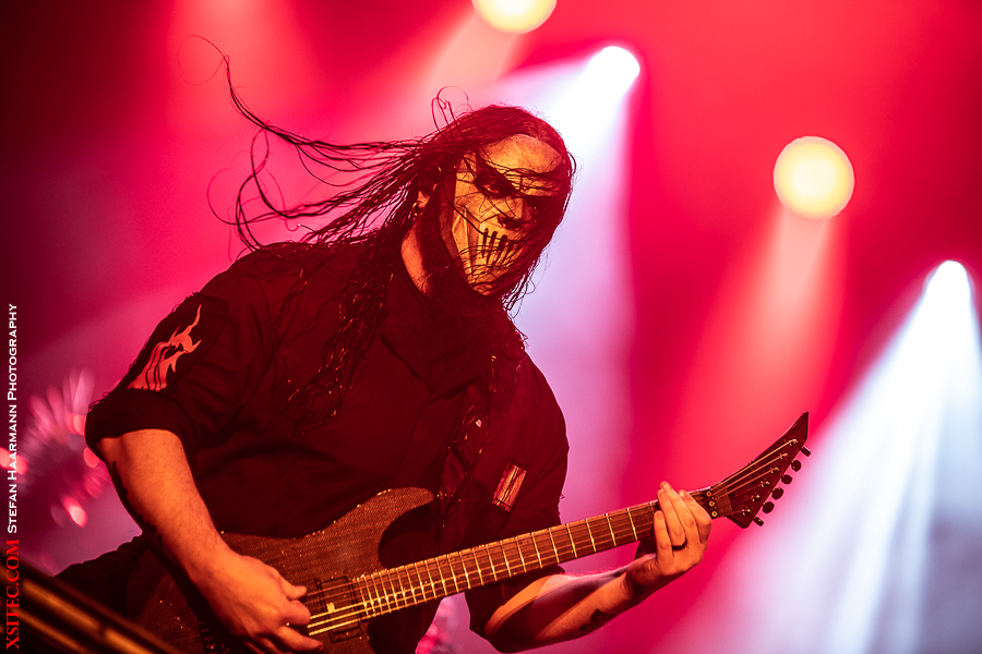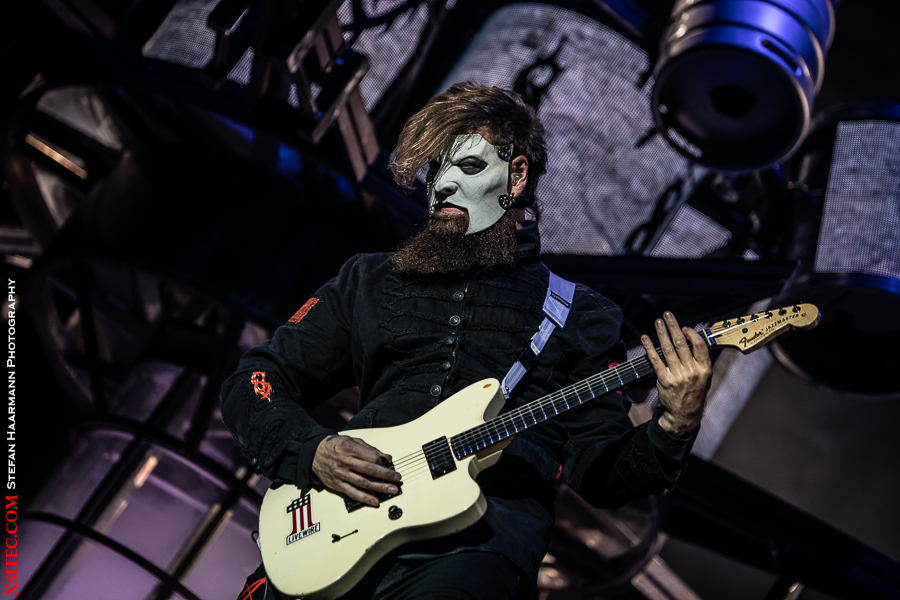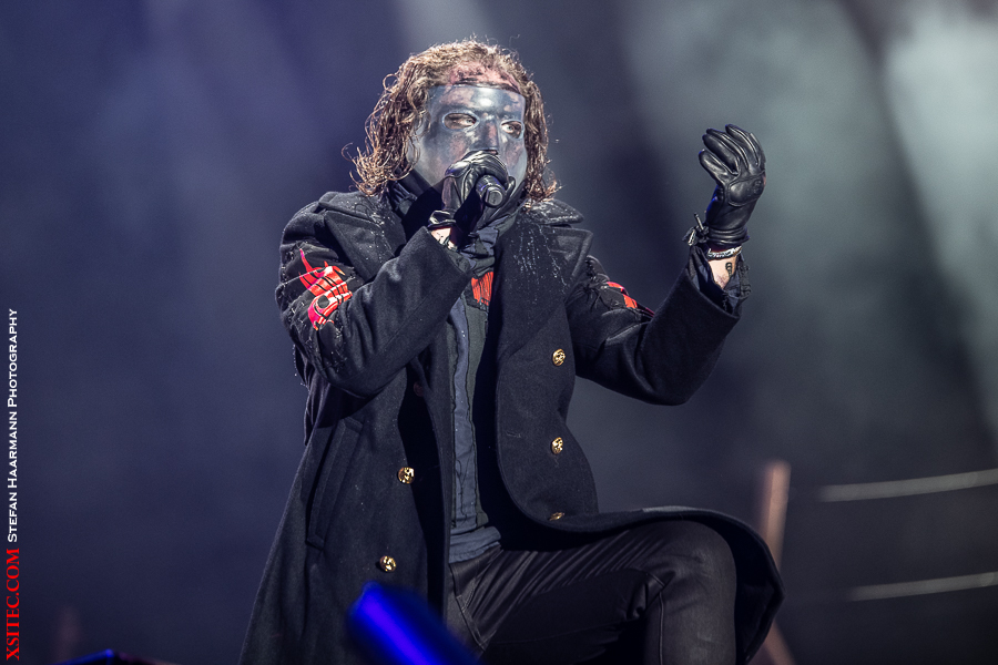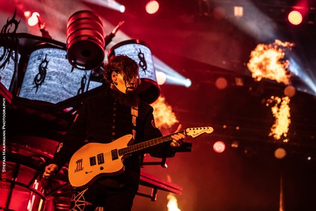 Die Show ist bombastisch und neben einer prächtigen Lightshow arbeiten Flammenkanonen und Nebelmaschinen am Anschlag. Man merkt Corey Taylor an, wie sehr er sich freut - trotz seines gesundheitlichen Handicaps – rechtzeitig zum Konzert wieder fit geworden zu sein. Mehrfach legt er seine Hand auf die Brust und verneigt sich vor den feiernden Fans. Neben den Trommeln, die teilweise in schwindelerregender Höhe aufgestellt sind, gibt es LED-Wände, die als Catwalk benutzen werden.