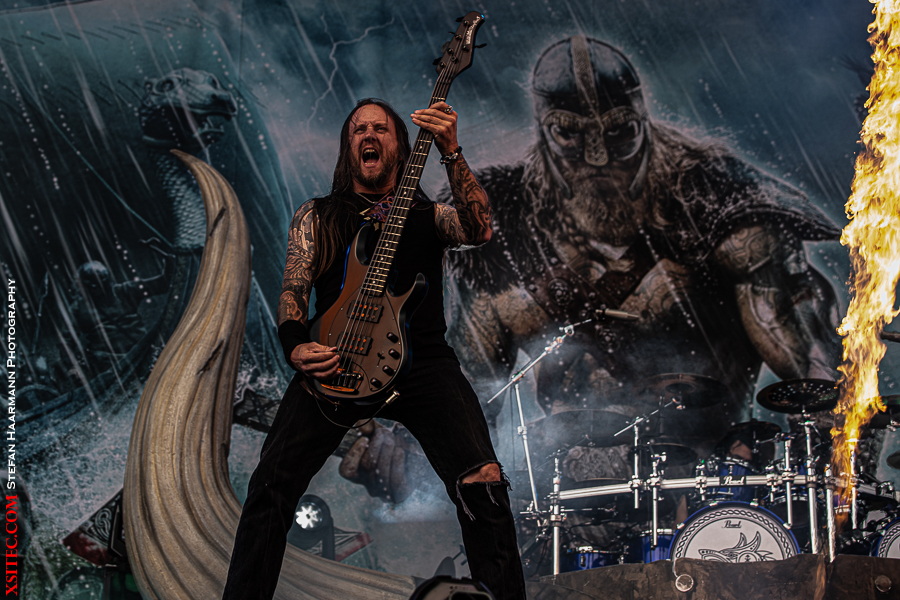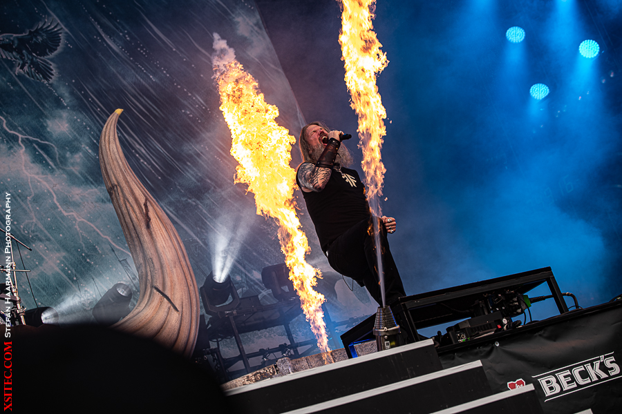 Next in Line sind AMON AMARTH, die es sich nicht haben nehmen lassen, ihre aufwändige Bühnendeko mit überdimensionalen Wickinger-Hörnern und Feuershow mit an den Ring zu bringen. Ein wahrlich heißes Spektakel, denn selbst in sicherer Entfernung brennt hier sprichwörtlich die Luft, was den Zuschauern mächtig Spaß macht, den Fotografen aber doch ordentlich einheizt.