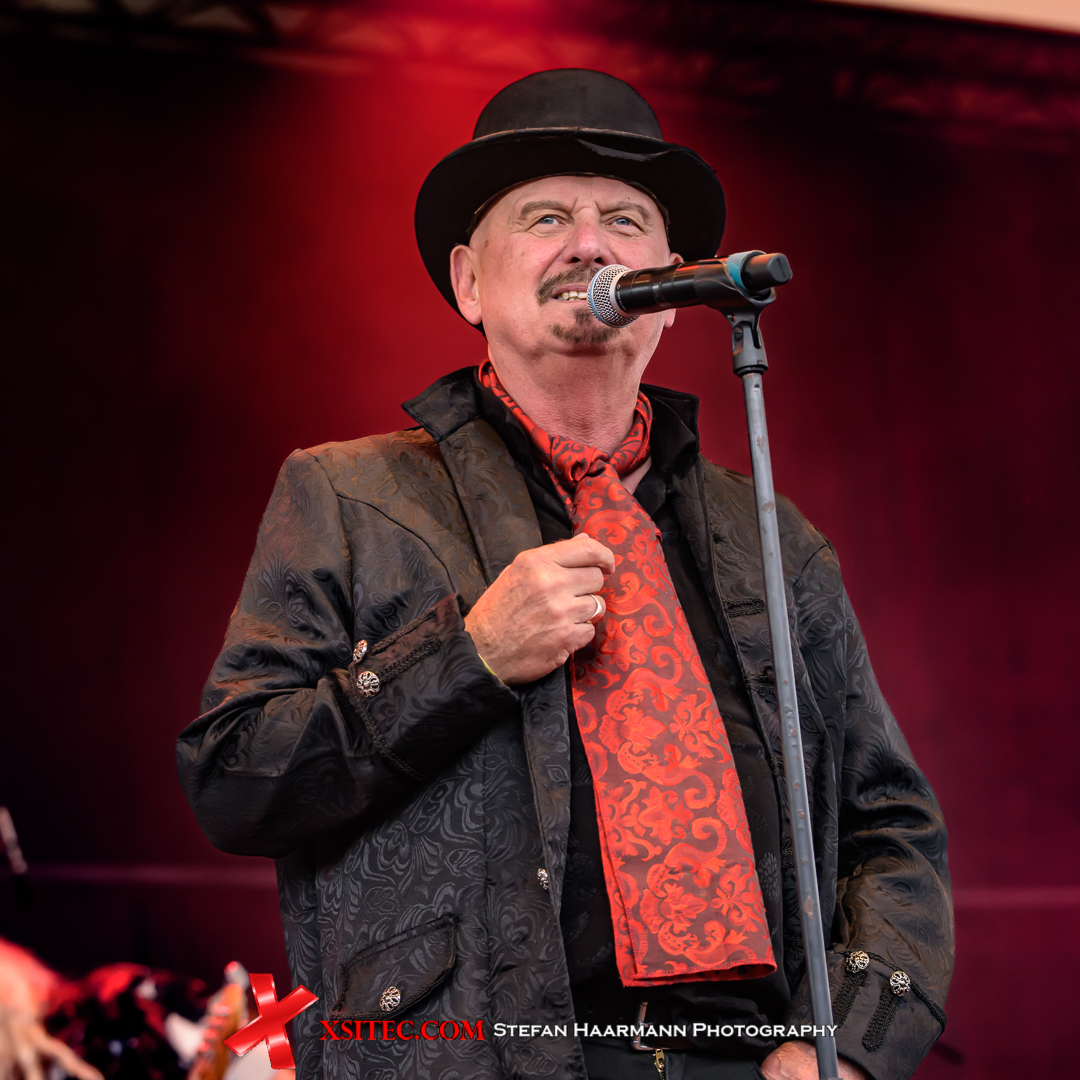 Kyle Thomas und seine Band EXHORDER sind danach bei wieder etwas besseren Wetterbedingungen an der Reihe. Thomas erzählt im Mittelteil von den Anfangstagen der Band, deren erste Show als Support für NOFX stattfand und deutlich in der Punk-Ecke Gefangene machte, obwohl man selbst Thrash-Metal spielte, die Musik aber authentisch und somit Punk-kompatibel war. Eine Show, die mitreißt und vor der Bühne diverse Circle-Pits initiiert. RIOT V im Anschluss stehen ihren Vorgängern in nichts nach. Die Band, die seit 2013 als Nachlassverwalter der New Yorker Heavy-Metal -Institution RIOT aktiv sind, lassen keinen Zweifel daran aufkommen, dass die Geschichte der Ursprungsformation keineswegs mit dem Tod von Guy Speranza († 2003; Gesang), Mark Reale († 2012; Gitarre) und Lou A. Kouvaris († 1978; Gitarre) geschrieben ist. Seit 2014 sind drei Alben unter dem Label RIOT V veröffentlicht worden, die locker das Niveau der Klassiker halten können. Und während das Wetter erneut Kapriolen schlägt, beweisen die Jungs um Frontmann Todd Michael Hall, dass RIOT V im Jahr 2024 immer noch eine echte Macht sind.