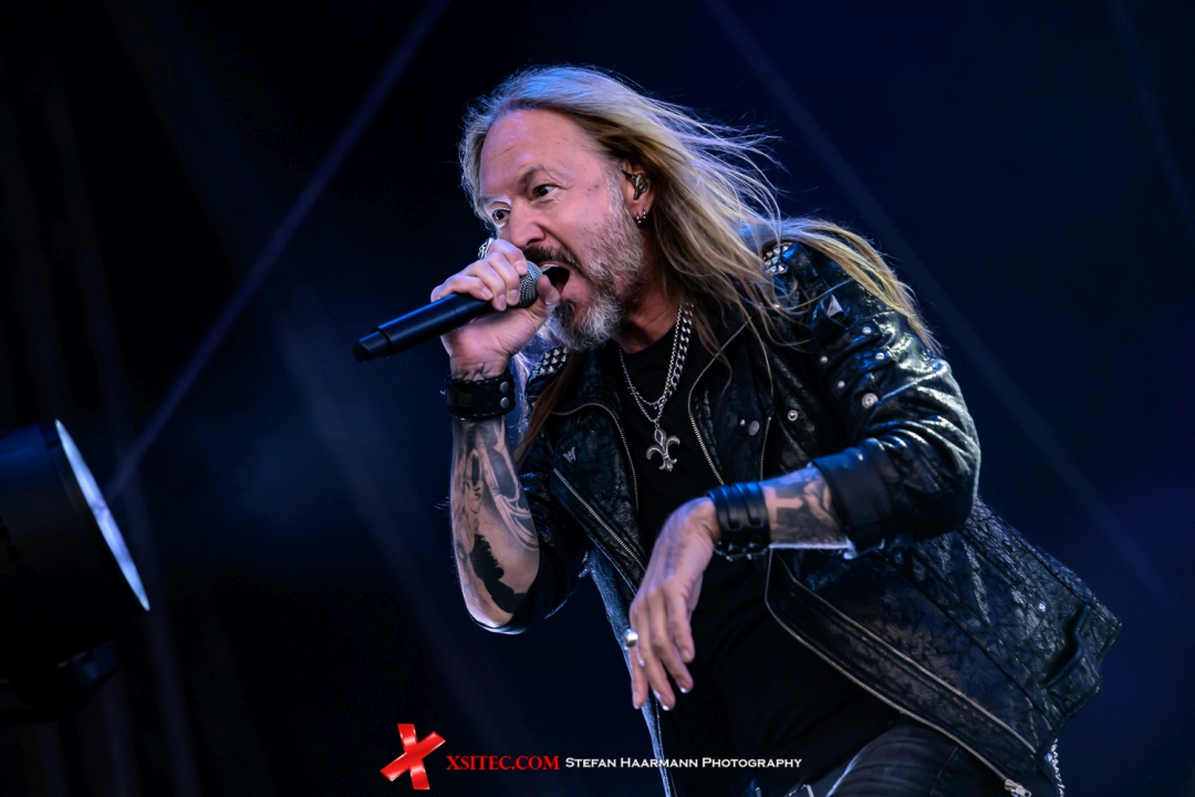 Danach gibt es mit MASSIVE WAGONS den ultimativen Abriss des zweiten Festivaltages. Was Frontmann Barry Mills während eines einzigen Songs an Posings anbietet, stellt so ziemlich alles in den Schatten. Ein Feuerwerk purer Extravaganz im Stil der ganz Großen. Mega!