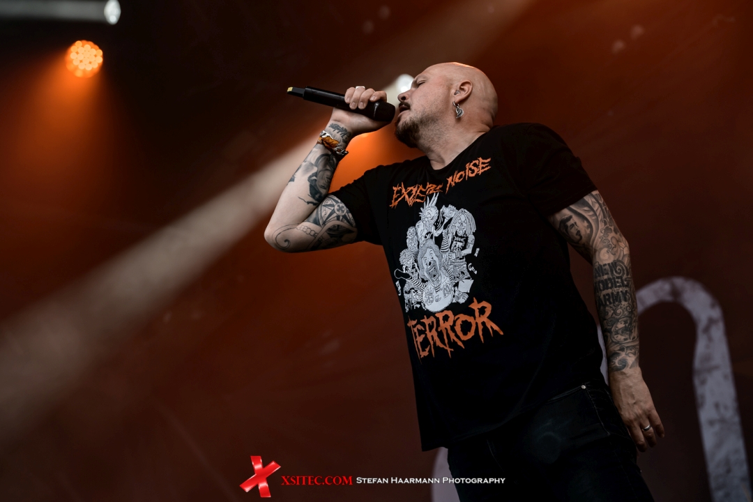 ORDEN OGAN stehen nach Wiedereröffnung bei strahlendem Sonnenschein auf der Bühne, das Gewitter ist ohne Schaden zu hinterlassen weitergezogen und Seeb Levermann begrüßt die Fans mit breitem Grinsen und weist schon einmal vorsorglich darauf hin, dass die neuen Songs eventuell noch nicht sitzen und man die Sache „verkacken“ können. In diesem Fall sollten die Fans einfach so tun, als ob nichts passiert wäre. Befürchtungen in dieser Hinsicht bleiben unbegründet, das neue Album kommt großartig an und die Hits der Band werden mächtig gefeiert, bevor ORDEN OGAN das Feld für SOILWORK räumen, die zunächst mit technischen Probleme zu kämpfen haben, da die Bühne aufgrund des Starkregens doch kräftig gewässert wurde. Bjørn „Speed“ Strid trägt es mit Fassung und nach ein paar Minuten kann man seine Stimme dann auch wieder hören.