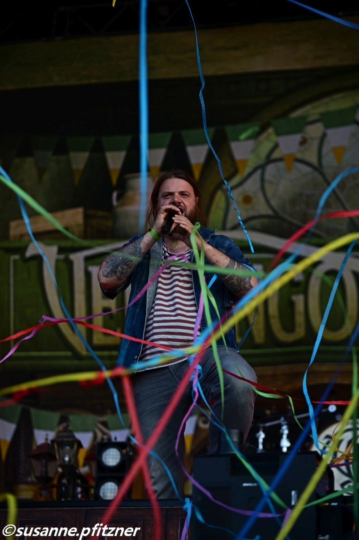 Danach wird es bunter, schriller und tanzbar. KUPFERGOLD finden sich zur Folk-Rock-Show ein, in deren Verlauf verbal der ein oder andere Becher geleert wird, während das Infield allmählich Betriebstemperatur erreicht, erste Crowdsurfer inklusive. Der Ohrwurm „Kupfer und Gold“ bleibt hierbei wie Honig in den Gehörwindungen kleben.