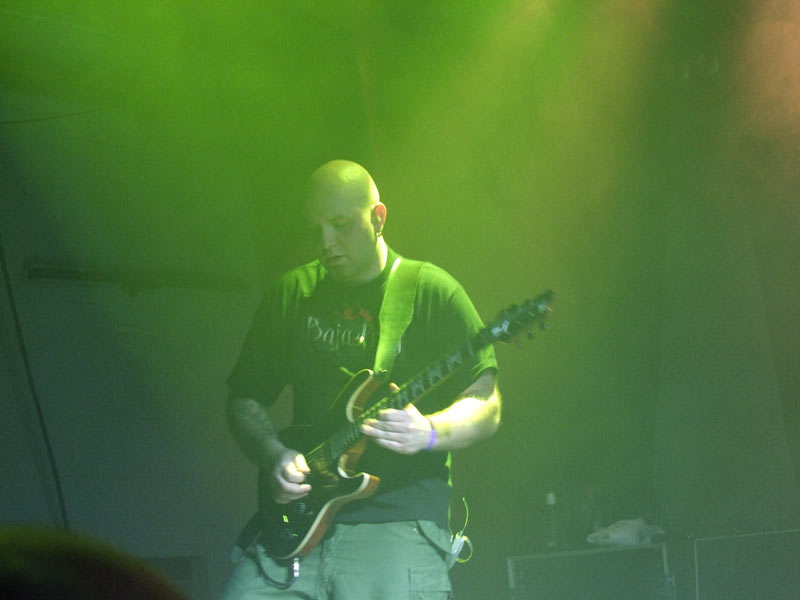 Wie man es von RIVERSIDE kennt, wird auf der Stage nicht viel geredet. Mit „Volte-face“ zeigen Riverside ihr druckvolles Gesicht. Gitarrenriffs wie Blitze, ein Drumgewitter, das den Boden vibrieren lässt, düstere Keyboard- und Bassläufe und dazu der intensive Gesang von Duda. Ein geflüstertes „Voices in my head“ leitet über zum Titelsong des ersten Albums „Out of myself“, das sowohl Dudas Stimmvielfalt, mal herzzerreißend und mal growlartige Schreie, wie auch die innere Zerrissenheit des Protagonisten der Trilogie widerspiegelt. „I turned you down“ bietet wieder einmal die fast flehentlich wimmernden Gitarrensoli, bevor „Acronym love“ das ganze mit tragenden Keyboards und wunderschönem warmen Gesang garniert. „Back to the river“ erinnert alle PINK FLOYD-Fans an die schönen Stunden, die sie mit „Shine on you crazy diamond“ hatten. „Dance with the shadow“ beginnt wie ein Vulkanausbruch und ist neben dem Titelsong das Highlight von „Second life syndrome“. Eine düstere elfminütige Achterbahnfahrt. Den Abschluss des regulären Programms bildet das psychedelisch-spacige „Rapid eye movement“.
