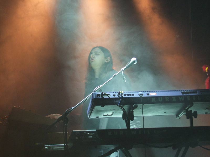 LazuliDas Duo aus LAZULI und RIVERSIDE passt einfach. LAZULI dürften mit ihrer atemberaubenden Präsentation ihres zweiten Albums „En avant doute…“ auch diejenigen überzeugt haben, die sie vorher nicht kannten. Live sind die sechs Franzosen schlichtweg eine Sensation. Songs wie „Laisse courir“, „Le repas de l’ogre“ oder „Cassiopée“ sind unglaublich stimmungsvoll und wesentlich druckvoller und beklemmender als auf dem Album. LAZULI schaffen etwas Ungewöhnliches: sie kreieren einen eigenen Stil. Natürlich erinnert das Ganze teilweise an KING CRIMSON, strotzt vor Ange-Theatralik und französischen Folk- und Chansonanleihen. Doch irgendwie erwehrt sich dieser einzigartige Klangkosmos aus Gitarren, Warr-Sticks, Léode, Vibraphons, Percussions und Metallophon jeglicher Einordnung. Keyboards braucht die Band dank der Léode, einem selbstentworfenen Instrument, das unentwegt verzerrte Kreisch-, Jaul- und Sägetone erzeugt, nicht. Rhythmische Basis der düster angehauchten Stücke sind aber die Percussions und Marimbas, die das perfekte Gegenstück zu Dominique Leonettis hohem Gesang darstellen. Die blutroten Lichter vor blauem Hintergrundlicht auf dem Gesicht Leonettis bei „Le repas de l’ogre“ führen in Verbindung mit seinem furchteinflößenden Gesang dazu, dass man das Gefühl hat, der betitelte Menschenfresser würde leibhaftig vor dem Zuschauer stehen. In diesen knapp 60 Minuten ziehen LAZULI alle Register, die die Klangwelten von „En avant doute…“ bieten. Das begeisterte Gemurmel im Publikum ist Beleg genug.