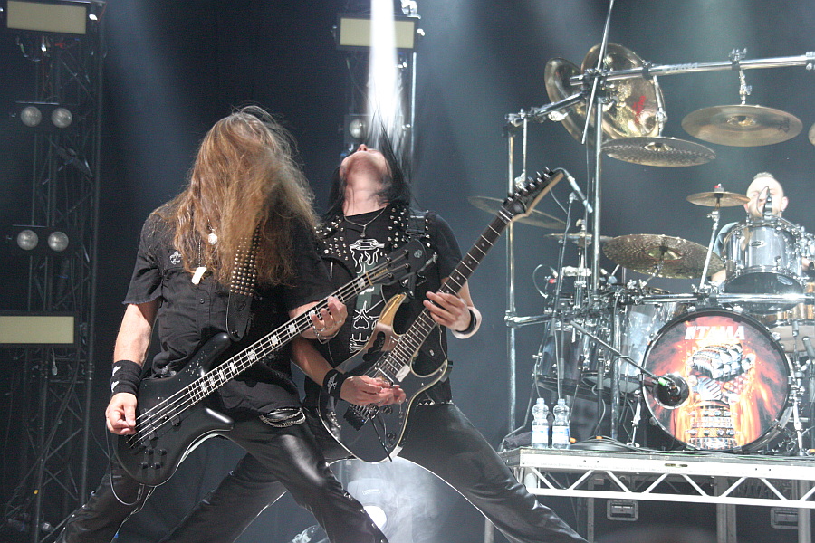 Von U.D.O. erwarte ich zugegebenermaßen nicht allzu viel. Um so größer fällt dann die Freude über den Mördersound aus, mit dem Herr Dirkschneider nebst sanierter Begleitmannschaft loslegt. Insbesondere die beiden neuen Gitarristen Andrey Smirnov und Kasperi Heikkinen agieren extrem tight und noch dazu äußerst agil. Ob dann im weiteren Verlauf des Sets unbedingt beide
