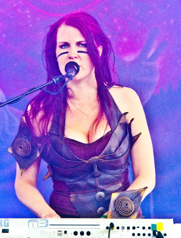 ENSIFERUM gehören zu den Combos, die nicht wenige junge Fans in Sachen Metal entjungfert, sie also zum Genre geführt haben; davon abgesehen geht den Finnen jedoch trotz ihrer noch rudimentär hörbaren Wurzeln im Black Metal jegliche Verruchtheit ab: Freundlich und massenverträglich, skandinavisch piekfein tönend und handwerklich auf der Höhe. Bassist Sami slappt, weil er es kann, nicht weil die Musik es braucht, Keyboarderin Emmi sieht - dafür muss man kein Chauvinist sein - in erster Linie fesch aus, und der eigentliche Kopf Petri Lindroos zeigt sich zwar nicht nur wortwörtlich skandinavisch käseblass, sitzt aber mit seinen happy Leads und Soli ebenso fest im Sattel wie sein Partner Markus Toivonen. Rhythmisch geschieht wenig mehr als ein stetes Umschalten zwischen Doublebass und Schunkel-Rhythmus, und überhaupt lassen sich ausgehend vom eröffnenden "In My Sword I Trust" alle Melodien mit oder ohne atü auf der Leber rasch Grölen. Das brauchen nicht wenige im Gelsenkirchener Rund, allerdings auch nicht alle, wobei neben "Guardians Of Fate", das Titelstück von "From Afar" und das frische "Retribution Shall Be Mine" neben den spät platzierten Höhepunkten "Stone Cold Metal" sowie "Ahti" hervorstechen. Abgesehen von der quirligen Performance des Tieftöner erweist sich ENSIFERUMs Ritt auf der Pagan-Oberflächenwelle als recht blutarme Affäre: vermeintlich heidnisch, statisch, gerade noch gut. (AS)