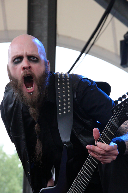 Für DESASTER gilt soundtechnisch leider Ähnliches, wie für HELLISH CROSSFIRE: nur eine Gitarre ist für Black Thrash Metal im Grunde genommen zu wenig. Im Gegensatz zu den Nürnbergern gelingt es den Koblenzern trotzdem, ganz ordentlichen Druck aus den Boxentürmen zu entfachen. Alles andere macht die Band mit ihrem hyperaktiven Stageacting wett. Klar, die Chose geht deutlich tighter, als an diesem Nachmittag, so katastrophal, wie Kollege Koroleski die Angelegenheit findet, ist es aber bei weitem nicht. Für Belustigung sorgt da eher die Tatsache, dass Gitarrist Infernal mit seiner schwindenden Haarpracht immer mehr wie Guildo Horn aussieht und wie von der Tarantel gestochen über die Bühne rennt und sein Instrument mit den passenden Posen bedient. Basser Odin mimt wie eh und je den Black Metaller (was nachmittags nicht ganz so cool kommt), während der muskulöse Frontmann Sataniac entweder die Matte kreisen lässt oder das Publikum mit bösem Blick zum Mitmachen animiert. Was jedoch kaum nötig ist, denn vor der Bühne ist es rappelvoll und die Fans gehen ordentlich mit. Wie bei DESASTER, die in diesem Jahr 25-jähriges Jubiläum feiern, üblich, geht es in der Setlist quer durch alle Epochen. Nach "Nekropolis Karthago" und "Devil's Sword" wird das Tempo beim neueren "Phantom Funeral" kurz mal gedrosselt, bevor die "Divine Blasphemies" ertönen. Die "Hellbangers" lassen die Matten zum "Teutonic Steel" kreisen und nach "Satan's Soldiers Syndicate" zockt man zum Gedenken an den verstorbenen Jeff Hanneman SLAYERs "Black Magic" herunter. Zum Höhepunkt avanciert "Metallized Blood", bevor mit "Tormentor" ein Gruß ins benachbarte Altenessen geschickt wird.