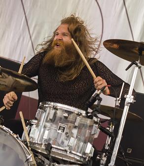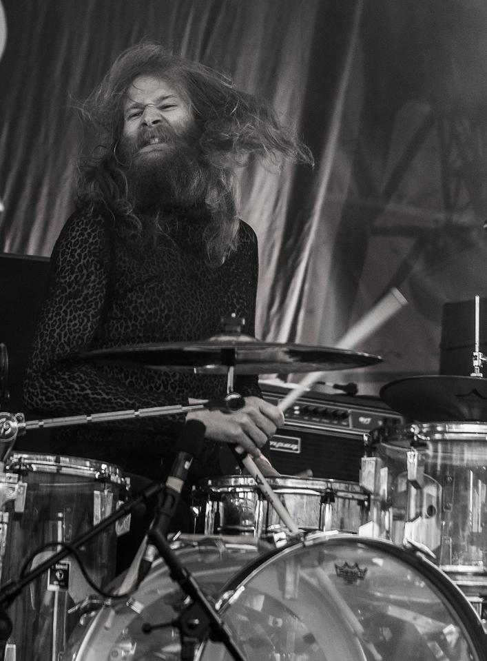 Drummer wären die Berliner live nicht so sehenswert - kompakteres neues Songmaterial hin oder her. Ganz im Geiste von The Whos Keith Moon rührt der passend Tiger-Top tragende Rübezahl die Kessel, als gebe es kein Morgen, und sitzt folgerichtig mitten auf der Bühne, während das Wetter ringsum dem Programm fast entsprechend Licht und Schatten im Wechsel beschert. Das introvertierte Gerödel von Gitarrist und Sänger Lupus bleibt bei Konzerten Geschmacksache, wenngleich man zu seinen Gunsten argumentieren darf, er müsse eine Doppelbelastung tragen und lasse sowieso lieber die Musik an sich sprechen, als sich durch verbale Kommunikations hervorzutun. Andererseits erfrischt das Trio durch angenehme Härte und ein kompaktes Set anstelle ausufernder Improvisationen, wie man sie an derselben Stelle etwa schon von den Label-Kollegen Blues Pills gehört hat. Die ausgewogene Mischung aus Neuem ("Lord Of The Sky", "Pale Blue Eyes", "Thousand Miles Away From Home", "The Old Man", "Last Living Dinosaur") und Altem ("Doomsday Machine", "Living In Your Head", "Black Sun", "Goddess Of Dawn", "All Our Thoughts", "Come Back Life") holt den Pokal schließlich definitiv heim. Cool wäre aber das deutschsprachige Nico-Cover "Reich der Träume" gewesen, das am Ende der aktuellen Platte steht. (AS)