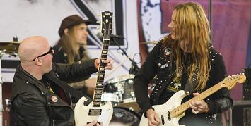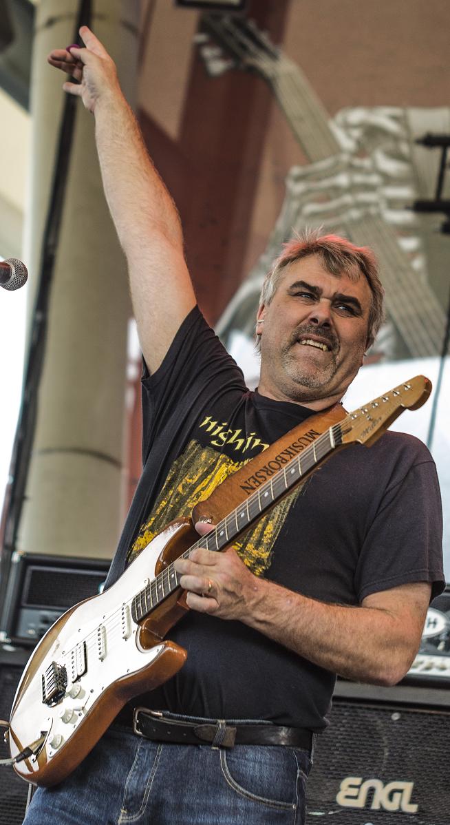 Mit BLACK TRIP gibt es anschließend beinahe so etwas wie eine Allstar-Truppe zu bestaunen, besteht die Band ja bekanntermaßen aus Mitgliedern von Enforcer sowie diversen Death-Metal-Bands. Stilistisch beschreitet man hier eher den Grat zwischen Hardrock und Heavy Metal und bei den gekonnt eingesetzten Double Leads lassen dementsprechend besonders Iron Maiden und Thin Lizzy grüßen. Die Schweden fühlen sich in diesem Terrain merklich wohl und bieten dementsprechend eine motivierte Show. Allerdings reicht es trotz des konstant gutklassigen Songmaterials nicht ganz zum Highlight, da es bei den Stücken letztlich doch etwas an Ausreißern nach oben mangelt, die wirklich aufhorchen lassen. Darüber kann man jedoch besonders live und auf einem Festival mal hinwegsehen, wodurch man am Gig des Quintetts zweifelsohne Spaß haben kann.