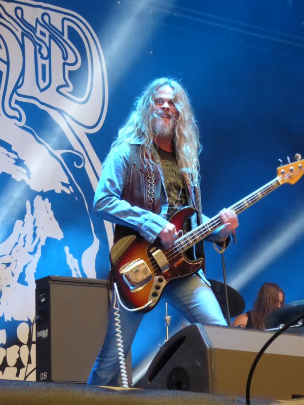 Der Samstag zeigt sich morgens von seiner wechselhaften Seite: nachdem zunächst die Sonne Hoffnung auf einen trockenen Tag macht, ziehen um die Mittagszeit einige Regenschauer über Gelsenkirchen. Gut, dass zunächst ORCHID auf dem Programm stehen, die ordentlich von der kurzfristigen Absage der Modern Metaller CHEVELLE profitieren. Statt auf der Boom Stage dürfen die BLACK SABBATH-Jünger heute auf der Big Stage ran und vermehrfachen damit mal eben die zu erreichende Zuschauermenge. Ob sich das aber letztendlich auszahlt, darf dann doch bezweifelt werden, denn so richtig will der Retro Doom Rock nicht zum Rest des heutigen Hauptbühnenprogramms passen. Gemessen an der Größe der Big Stage weiß auch nur Bassist Keith Nickel angemessen die Rampensau zu spielen, alle anderen agieren wie gewohnt zurückhaltend und lassen die Musik für sich sprechen. ORCHID wirken einfach deplatziert und hätten in der Emscher-Lippe-Halle einen passenderen Rahmen für ihre Show gefunden.