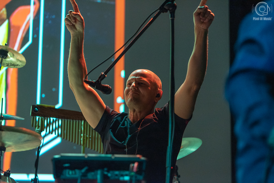 Ok, genug der Spannung. Thorsten Quaeschning, der musikalische Erbe von Edgar Froese und aktuelle Kopf der Elektronikformation Tangerine Dream läutete den Abend um 20:00 Uhr mit den Synthesizerklängen seiner eigenen Kompositionen ein. Zumindest konnte ich als in diesem Genre eher Ungeübter keine Stücke von Tangerine Dream heraushören. Für die Gäste war das sicher eine Herausforderung, da die Musik von Quaeschning und SAGA kaum unterschiedlicher sein könnten. Aber gut, man wächst an seinen Aufgaben. Nach ca. 40 Minuten war dann aber auch schon wieder Schluss und der Umbau begann.