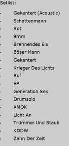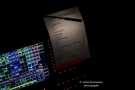 Danach geht das Licht im Saal nochmals kurz aus und mit „Schattenmann“ startet die Band das reguläre Set mit genau dem Song, der nach Aussage Frank Herzigs, wie kein anderer die verborgenen Seiten seines Ichs zeigt, die er im „richtigen“ Leben tunlichst verborgen hält.