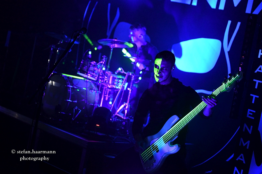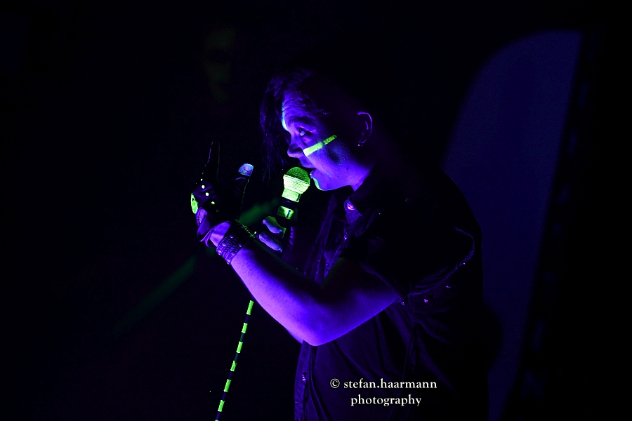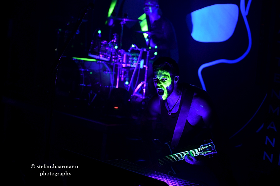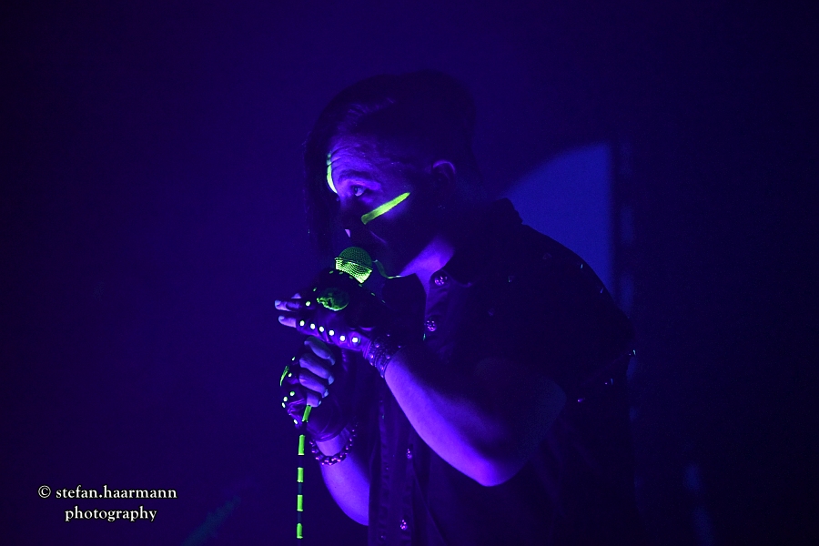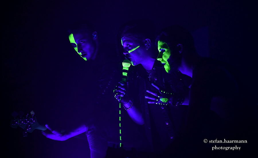 Neben der überaus wuchtigen Performance der Band sorgen die UV-Effekte für Aufsehen. Die Schattenmänner verstehen es, das Wechselspiel zwischen hellem Scheinwerferlicht und der schummerigen Illumination nur in Form von UV Licht perfekt in ihre Show einzubauen, die die Band in ein bläulich-grünliches Szenario versetzt und so für einzigartige Momente sorgt. Großartig.