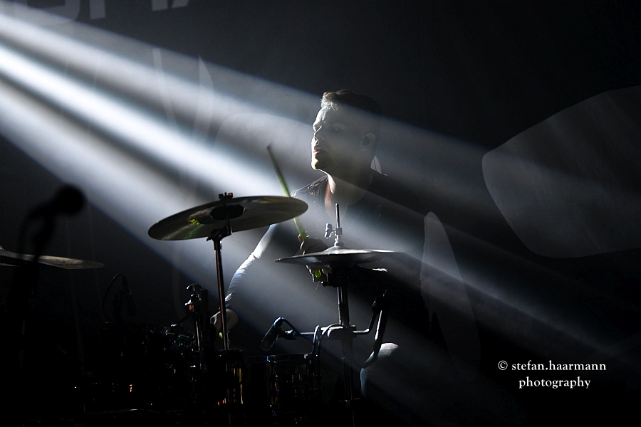 Nach einer fulminanten Version ihres „Generation Sex“ gehen drei Schattenmänner von der Bühne und überlassen Drummer Nils Kinzig das Feld, der mit fantastischer Präzision ein Solo der Extraklasse abfeuert, das den Kulttempel noch einmal so richtig durchschüttelt.