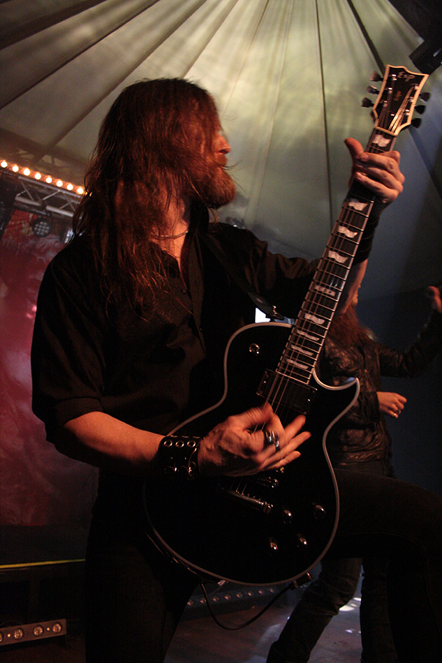 Jene Fans bemängeln nach der Show den Sound, der nicht zugelassen habe, dass sich alle Nuancen der Songs heraushören, und tatsächlich ist vom Keyboard wenig bis gar nichts zu hören. Egal, die Nummern machen auch in Reinform mächtig Spaß und die mitreißende Bühnenpräsenz der Band ersetzt das Konserven-Gedudel allemal. Vor allem Frontsau Freddy Lim und "The Infernal" Jesse Liu an der Gitarre sind Meister im Einnehmen verschiedenster wirksamer Posen. Am Ende feiert ein Großteil des Publikums CHTONICs rasenden Melodic Black-Death-Folk-was-auch-immer-Metal mit, am Autogrammstand wird die Band nach dem Konzert mit Autogramm- und Fotowünschen belagert. Gäbe es jetzt keine Hauptband, hätte der Eintrittspreis sich trotzdem gelohnt.