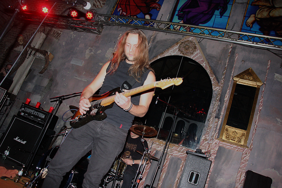 Vor dem Auftritt von THRÄNENKIND beginnen dann die technischen Probleme und der Linecheck wird in die Länge gezogen. Ohne wirklichen Erfolg jedoch, denn die Band hat anfangs massiv mit Technikproblemen zu kämpfen, was die Stimmung merklich drückt. An der Front steht mit Sänger Nils Groth der Schlagzeuger von FÄULNIS, die auch noch ihren Auftritt haben werden. Musikalischer Kopf ist Gitarrist Nathanael, der ansonsten auch bei AGRYPNIE und HERETOIR mit von der Partie ist. Und wo wir gerade bei AGRYPNIE sind: deren Sänger Torsten ist bekanntlich auch Frontmann von NOCTE OBDUCTA und kommt direkt im ersten Song von THRÄNENKIND zur gesanglichen Unterstützung mit auf die Bühne. Retten kann er den Auftritt jedoch nicht. Der melodisch-melancholische Sound der Band kann hier und heute nämlich nicht wirklich überzeugen und wirkt über weite Strecken langatmig und letztlich auch ein bisschen belanglos. Zwar ist das Publikum auch von diesem Auftritt angetan – man mag es auf die preiswerten Alkoholpreise schieben – doch insgesamt können THRÄNENKIOND von allen Bands am wenigsten überzeugen.