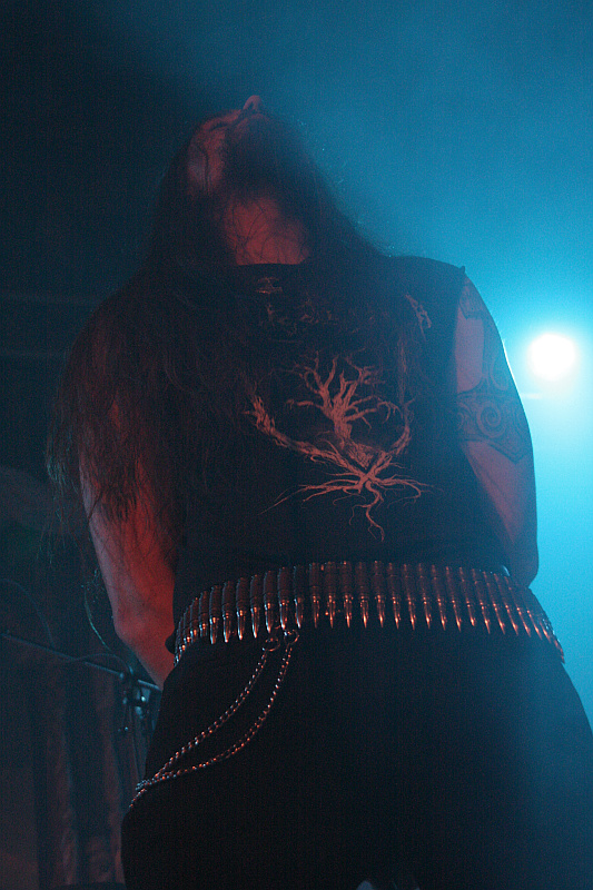 Um Punkt 16 Uhr fällt der Startschuss für einen langen Konzertabend mit der Münchener Band WALDGEFLÜSTER und vor der Bühne ist es jetzt schon erstaunlich voll. Wer bei dem Bandnamen folkloristisches Geschunkel erwartet, wird getäuscht. Die Band um Sänger Winterherz spielt atmosphärischen, melodischen Black Metal der zumeist im Midtempo dargeboten wird. Die Songs haben gerne mal Überlänge, so dass in den 40 Minuten Spielzeit gerade mal fünf Nummern gespielt werden, darunter „Seenland“ und „Fichtenhain“ vom aktuellen Longplayer "Femundsmarka - Eine Reise in drei Kapiteln“ sowie „Wotan sang“ vom „Herbstklagen“-Debüt. Winterherz hat eine gute Bühnenpräsenz und bietet seine Songs mit Leidenschaft und nicht zu derbem Gekreisch dar und entledigt sich zum Ende des Sets seines Shirts. Die Band steht ein bisschen im Hintergrund, erledigt ihre Aufgabe aber souverän. Das Publikum ist angetan von der Darbietung und spendet deutlich mehr als nur Höflichkeitsapplaus. Zahlreiche Matten fliegen schon jetzt und dass die Band prima ankommt zeigt auch die Tatsache, dass man hinterher zahlreiche WALDGEFLÜSTER-Shirts im Publikum sieht.