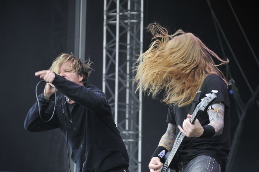 Ohne Pause wanderte ich danach zurück zur Sweden Stage, wo THE CROWN mit altem/neuen Shouter Johan Lindstrand erst mal gepflegt die nächste Stunde meine Ohren und mein Hirn in Einzelteile zerlegten. Leider ließ der Sound ein wenig zu wünschen übrig und es war sehr wenig los vor der Sweden Stage. Ein kleiner hartnäckiger Moshpit hielt sich in der Mitte, insgesamt aber bekam man eher den Eindruck, dass THE CROWN in einen kleinen, ranzigen, dunklen Club gehören, wo sie einem in 90 Minuten den Körper in anatomische Einzelteile zerfräsen. Die schwedische Death-Thrash-Metal Band hatte es nicht leicht, zwar spielten sie sich komplett durch ihre fünf bisherigen Alben, dennoch sorgten Songs wie "Blitzkrieg Witchkraft", das live richtig rockig rüberkommende "World Below", "Crowned In Terror", "1999 – Revolution 666" oder auch das von der letzten Platte stammende "The Tempter And The Bible Black" wohl nur bei eingefleischten The Crown Fans für richtige Begeisterung. Fazit: ich fand den Gig dennoch gut und würde die liebend gerne nochmal auf Tour in einem kleinen Club sehen, da zerlegen sie wahrscheinlich die Hütte.