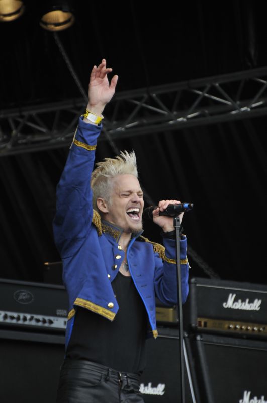 Weiter gings mit den Schweden H.E.A.T. auf der Zeppelin Stage, einer noch recht jungen, in Schweden aber schon sehr bekannten Hard Rock Band, die ich mir zumindest mal ein paar Songs lang angucken wollte. Völliges Kontrastprogramm zu den kurz davor gesehenen Fear Factory, aber das ist man vom Sweden Rock so gewohnt und genau das macht dieses Festival so einzigartig und vielfältig. Da spielt halt ein Sebastian Bach und Dimmu Borgir zeitgleich auf verschiedenen Bühnen, völlig normal. Aber zurück zu H.E.A.T. – das Sextett macht durch die Bank Spaß, hatte einen guten Sound und wusste die zahlreich vor der kleinen Zeppelin Stage erschienenen Fans mit viel Energie, Bewegung und durchweg rockenden Songs zu überzeugen. Und übrigens, kleiner Tipp am Rande: Sänger Erik Grönwall, seit 2010 Sänger von H.E.A.T., war 2009 der Gewinner von Swedish Idol. Sucht mal im Netz nach seinem Namen plus dem Zusatz "Swedish Idol" und "Run To The Hills" bzw. "18 And Life" und schaut euch die Videos dazu an. Wenn euch das gefällt, dann sucht noch mal nach "Best of Erik Grönwall LIVE Idol 2009" (davon gibt es vier Teile) und hört euch mal sein Cover von Van Halens "Why Can´t This Be Love" in der Show an. Dann rechnet drei Jahre weitere Live- und Studio- Erfahrung dazu und ihr bekommt einen kleinen Eindruck, wie wahnsinnig talentiert dieser Herr heutzutage immer noch ist! Toller Auftritt auf dem Sweden Rock, der mich davon überzeugt hat, mir auf jeden Fall H.E.A.T. Alben zuzulegen.
