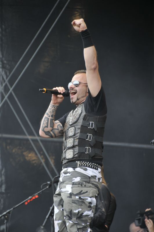 Singspielchen á la "wer singt lauter, die rechte oder die linke Seite des Publikums" ein. Alles wurde von der Masse auf dem übervollen Platz begeistert abgefeiert, auch der kurze, EDGUY Fans ebenfalls bekannte, zum Mitsingen einladende "Star Wars"-Einspieler. Machte auf jeden Fall auch Spaß. Nur der Laberfaktor von Herrn Sammet inklusive massiver Selbstbeweihräucherung war mal wieder extrem hoch, was einem dezent auf den Keks ging, wenn man EDGUY schon etliche Male gesehen hat. Allerdings ist man geneigt, dem Tobi das ganze Gerede ein weiteres Mal zu verzeihen, da der Mann einfach gut singt, ein sauguter Entertainer ist und überhaupt weiß, was er da tut!
