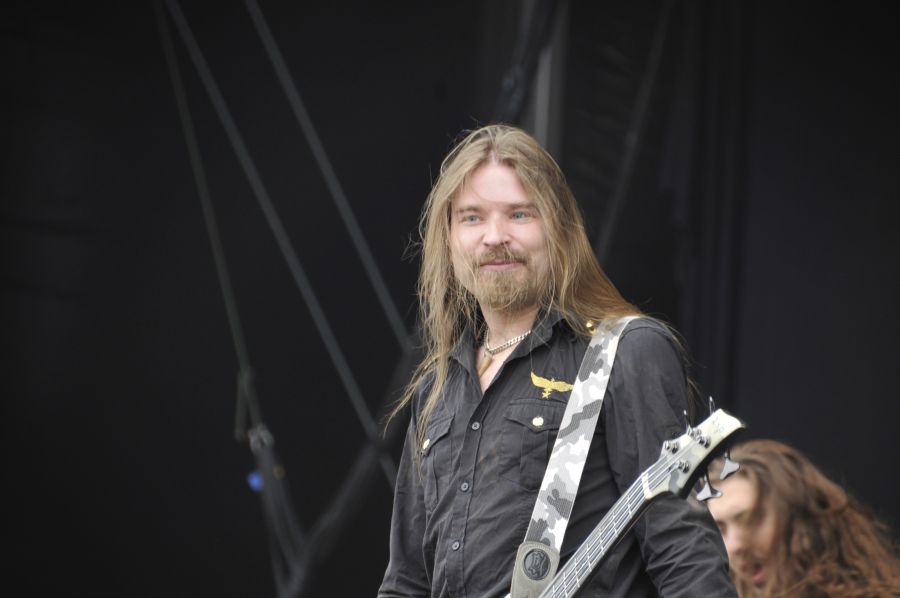 Das Gelände wurde erkundet und wir fanden uns vor der Sweden Stage ein, um uns SABATONs Intonation der schwedischen Nationalhymne anzuhören. Das ging bei der Verfasserin dieser Zeilen nur mit deutlicher Unterstützung von hochprozentigem Getränkekonsum im Vorfeld, da Sabaton mal so gar nicht mein musikalischer Geschmack ist. Aber die Herren aus Falun machten trotz fast komplett rundum erneuerter Musikerschar ihre Sache wie immer ordentlich, hatten zudem Heimvorteil. Und es war brechend voll vor der Bühne, viele wollten sich den exklusiven Swedish National Anthem-Auftritt von Sabaton nicht entgehen lassen. Und so ließ Sänger Joakim Brodén einen guten Teil der schwedischen Nationalhymne "Du gamla, du fria" vom zahlreich erschienenen Festivalpublikum gleich selber singen. Hinten dran gab es dann noch ein verkürztes Set von sechs Songs quer durchs SABATON Schaffenswerk. Da durften so Mitsingklassiker wie "Carolus Rex" vom aktuellen Album und natürlich "Primo Victoria" und "Metal Crüe" nicht fehlen.