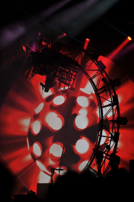Die Band startete mit "Wild Side" und "Life Wire" ins Set. Es gab keine größeren Songüberraschungen, das war das altbewährte MÖTLEY CRÜE Hit-Paket, was aber auch völlig in Ordnung ging. Nichts anderes wollen die Leute auf einem Festival hören. Allerdings brauchte ich wirklich ungefähr ein Drittel des Gigs Zeit, um mich von meinem inneren Schockzustand zu erholen: zum einen sah Mick Mars nicht nur (absichtlich) gruselig aus, der Mann bewegt sich krankheitsbedingt halt mittlerweile auch so langsam und vornübergebeugt, dass mich der Anblick schon ein klein wenig entsetzte. Da frage ich mich halt wirklich, wie lange er das noch physisch alles mitmachen kann. Spielerisch gab es nichts zu meckern, der Mann ist nach wie vor ein super Gitarrist. Zum anderen war ich alles andere als erfreut über die (sorry, aber ich muss das so drastisch ausdrücken) miese Gesangsleistung von Vince Neil. Schon klar, der Gute konnte noch nie perfekt singen, aber ich erwarte verdammt noch mal korrekte Einsätze bei einer Band wie MÖTLEY CRÜE. Er klang ungefähr die Hälfte des Auftrittes, als ob er Mickey Mouse noch fix vor dem Abflug über den großen Teich verschluckt hätte, setzte entweder zu früh oder zu spät mit dem Gesang ein. Im Laufe des Gigs wurde das endlich besser, "Home Sweet Home" war sogar erstaunlich ok. Ich bin mir nicht sicher, ob ich mir das sonst bis zum Ende hin hätte anhören können. Highlight des gesamten Gigs war in der Tat die wirklich beeindruckende Lichtshow inklusive Riesenprojektionswand hinter dem Drumkit. Und besonders natürlich das Drum-Solo von Tommy Lee, als er zu relativ progressiv-elektroartigen Klängen sein Solo im sich durch den Rollercoaster routierenden Drumkit teilweise kopfüber spielte! Natürlich ließ er es sich nicht nehmen, sich für eine weitere Zusatzrunde ein Mädel aus dem Publikum zu fischen und es auf den fix dazu montierten zweiten Sitz hinter sich zu setzen.