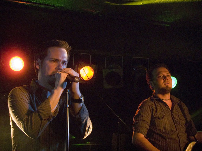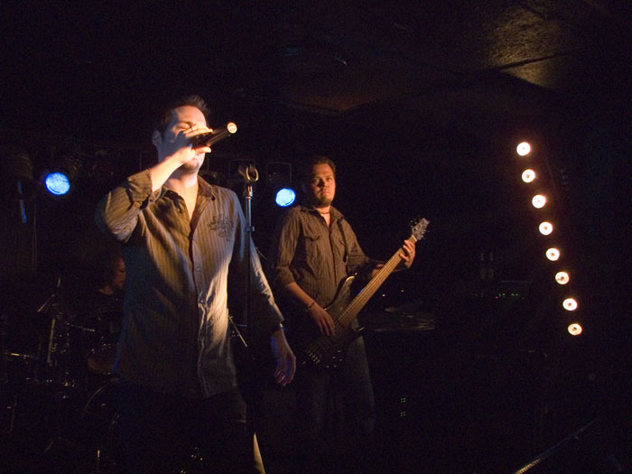 im Laufe des Konzerts aber bessert (oder die Ohren des Rezensenten haben sich einfach daran gewöhnt…). Die Hamburger konzentrieren sich erstmal auf die beiden neusten Alben und bringen auch Stücke vom düster-melancholischen Konzeptalbum „Posthumous Silence“ – erstaunlich, wie diese introvertierten Stücke live funktionieren: Bei den „spoken word“ Passagen vom Band kommt richtig Gänsehautstimmung auf. Gutes Stichwort! Guido Bungenstock legt ein paar leidenschaftliche Soli hin, daß es einem wohlig den Rücken rauf und runter läuft: Das ist leidenschaftliche Musik zum Mitfühlen und –erleben!