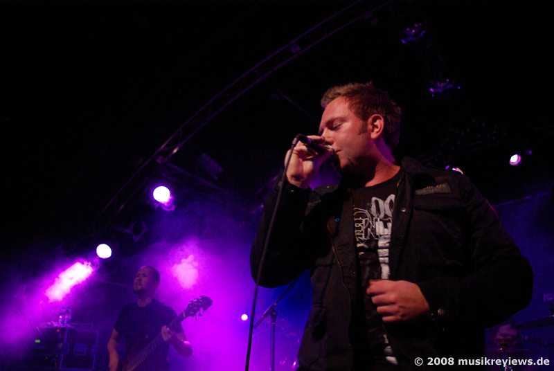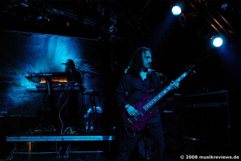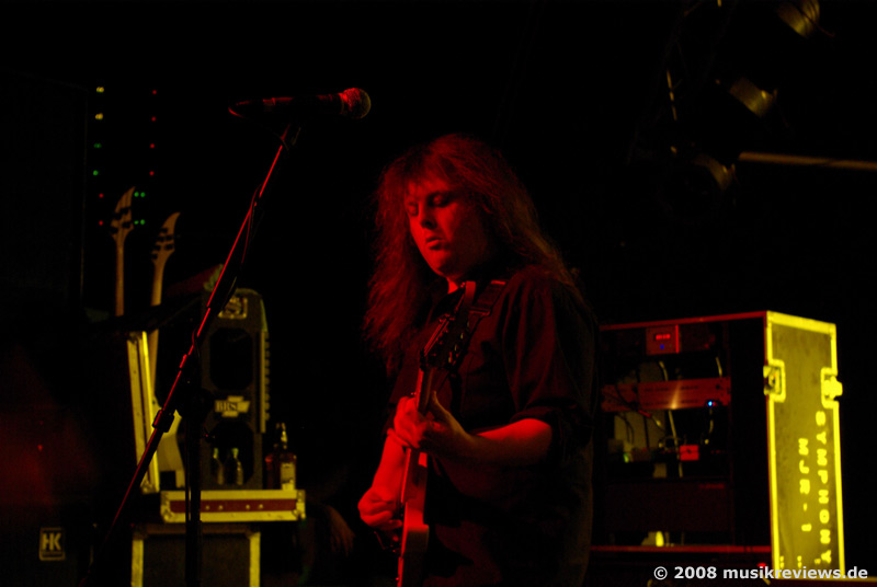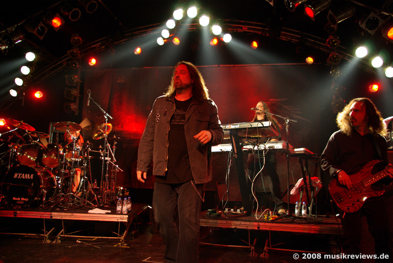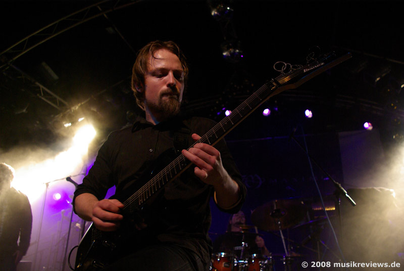 haben treue Fans: In der ersten Reihe steht ein Typ (ebenfalls aus Norwegen), der seinen Helden auf der Deutschlandtour hinterher reist und bei den Bandmitgliedern anscheinend schon bestens bekannt ist. Die Gralsbringer der Progressivität im Wortsinne sind das Quartett ebenfalls nicht, aber die Herren bieten ihren Mix aus leicht bekömmlichen Prog Metal mit AOR Elementen mit jeder Menge Leidenschaft dar, was das Publikum auch spürt und dementsprechend mitgeht. Etwas nervend, aber sicherlich Geschmackssache, ist der hohe, klare Gesang des Frontmanns Michael Eriksen, der zwar technisch perfekt, aber auch etwas glatt und brav rüberkommt.