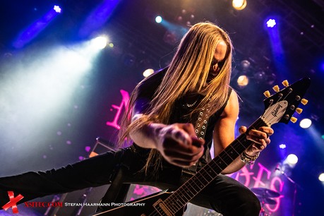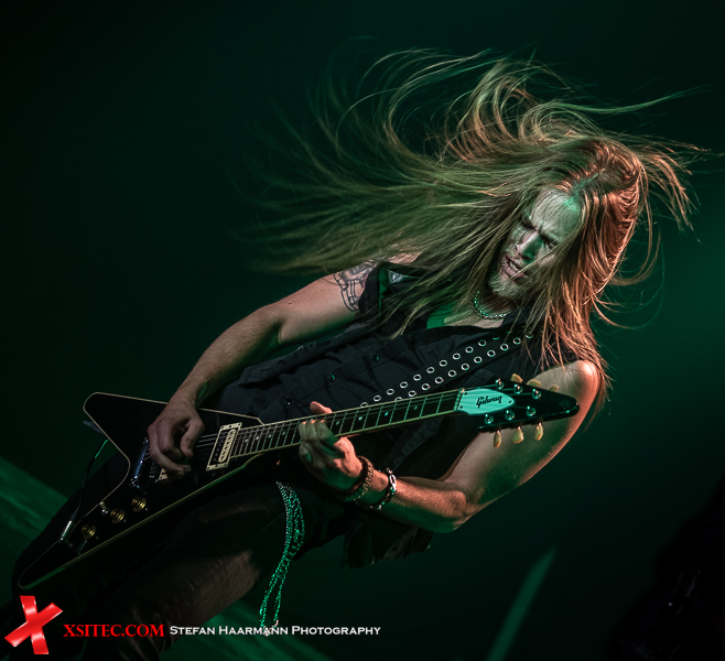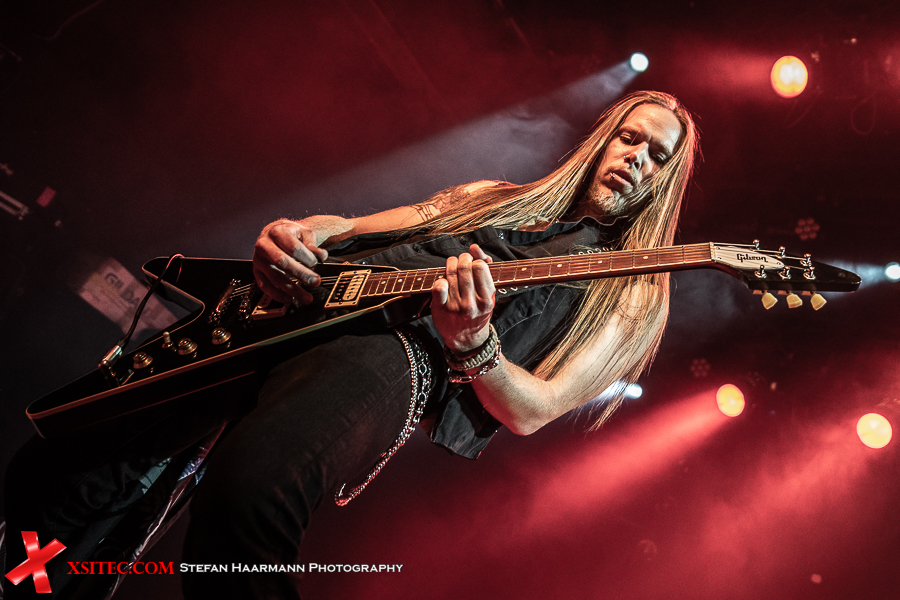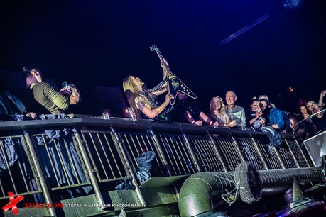 Hardy am Bass muss sich aufgrund des vielstimmigen Chors in Bochum ein ums andere Mal ein Lächeln verkneifen und traktiert seinen Viersaiter umso vehementer. Nach „Life Ain´t Easy“ gibt es mit „Dancing On A Razor Blade“ vom 2017er Album „One More For The Road“ einen weiteren Killer, der neben einer hartrockenden Strophe über einen stadiontauglichen Chorus verfügt. Ganz nebenbei glänzt Poser-König Norman Bites immer wieder mit grandiosen Soli, die er seiner Gibson Flying V entlockt.
