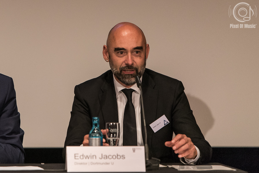 Neben den beiden vorgenannten waren am Podium noch Katrin Pinetzki (Pressereferentin der Stadt Dortmund), Ulrich Sierau (Oberbürgermeister der Stadt Dortmund) und Edwin Jacobs (Direktor des Dortmunder U).