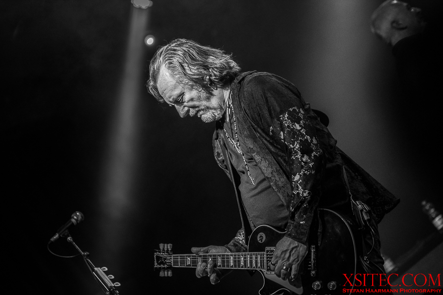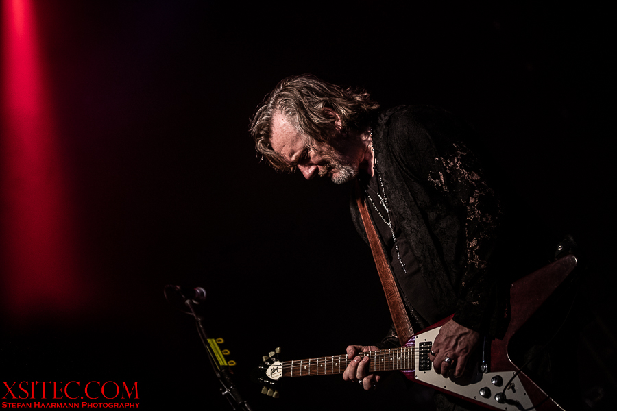 Luke Morley, kreativer Kopf THUNDERs, aus dessen Feder alle Hits der Band stammen, zieht am linken Bühnenrand alle Register seines Könnens und zaubert immer wieder Soli der absoluten Spitzenklasse aus den diversen Sechssaitern, die fleißige Helfer fast nach jedem Song an sich nehmen und wieder korrekt stimmen.
