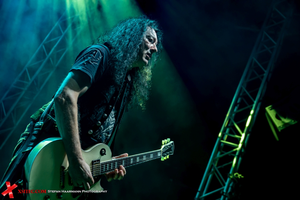 Beim Namen Peter Baltes klingelt es zumindest beim eingefleischten ACCEPT-Fan, denn der Hühne am Viersaiter war neben Udo Dirkschneider Gründungsmitglied der Kult-Metaller, verließ die Band aber 2018 und stieg nach dem Abgang von Tilen Hudrap Anno 2022 bei U.D.O. ein. U.D.O. machen genau dort weiter, wo PRIMAL FEAR aufgehört haben: krachende Riffs, knarzig-rauchige Stimme, dazu geniale Soli der beiden Stromgitarren, die für mächtig Stimmung im Publikum sorgen, das Ganze getragen vom perfekten Zusammenspiel der Rhythmus-Fraktion um Sven Dirkschneider und Peter Baltes. Das kann man nicht viel besser machen, hinzu kommt ein bestens aufgelegter Udo Dirkschneider, der immer noch vielen Jungspunden zeigt, wo der Barthel den Most holt. Der Abend vergeht wie im Flug, Klassiker wie „Holy“ oder „They Want War“ schütteln die Turbinenhalle so richtig durch, bevor es dann im Zugabenteil ein Wiedersehen mit einem alten Mitstreiter gibt, der lange Jahre Teil des U.D.O.-Projekts gewesen ist.