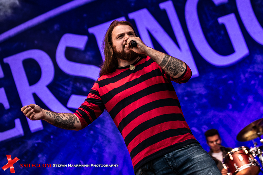 Und es geht Schlag auf Schlag weiter: „Feuergeist“ stellt einem immer noch die Nackenhaare auf, während „Hoch die Krüge“ ein typischer Party-Ohrwurm ist, der auf keinem VERSENGOLD Konzert fehlen darf. Auch das eindringliche „Wir tanzen nicht nach braunen Pfeifen“ sorgt für vielstimmige Chorgesänge im weiten Rund der Arena, bevor mit „Thekenmädchen“ der bisher erfolgreichste Song aus der Feder der Folk-Rocker ansteht. „Butter bei die Fische“ beschließt das reguläre Set, bevor die Bremer mit „Ich und ein Fass voller Wein“ nochmals an die Feierlaune appellieren, „Haut mir kein´ Stein“ als das stärkste Stück aus der Feder VERSENGOLDs rundet das Set ab, danach gibt es noch den obligatorischen „Abgesang“ im á capella-Format.