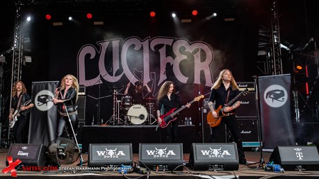 Dann geht es hinüber zu LUCIFER. Neben Frontlady Johanna Sadonis greifen hier Nicke Andersson (THE HELLACOPTERS, ENTOMBED und IMPERIAL STATE ELECTRIC) sowie Martin Nordin (DEAD LORD) zu den Instrumenten. Komplettiert wird das Ganze durch Linus Björklund und Harald Göthblad. Musikalisch ist die Band irgendwo zwischen DEEP PURPLE, BLACK SABBATH und BLUE ÖYSTER CULT zu verorten, was die Sache extrem schmackhaft macht.