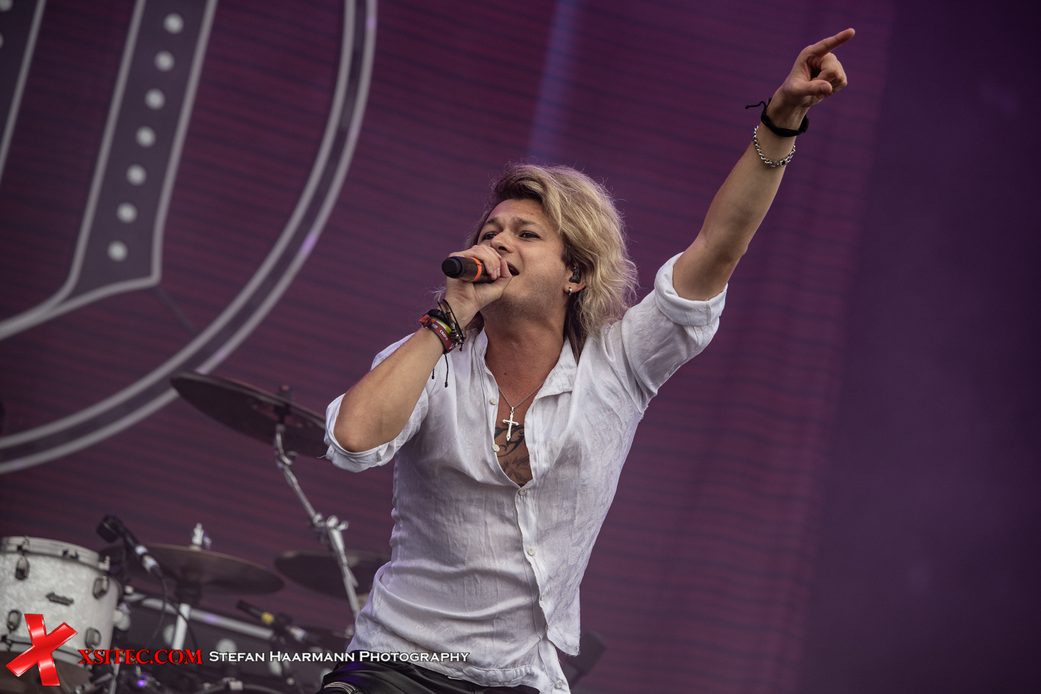 Leider spielt das Wetter an diesem Morgen noch nicht wirklich mit und die Prognosen lassen auch darauf schließen, eventuell den ein oder anderen Schauer abzubekommen. Der erste geht dann auch zur Unzeit während der Show von KISSIN` DYNAMITE herunter. Die Jungs müssen deshalb wohl auch auf ihre sonst so spektakuläre Feuershow verzichten – der Stimmung tut dies hingegen keinen Abbruch, zumal der Schauer nach dem dritten Song bereits abebbt.