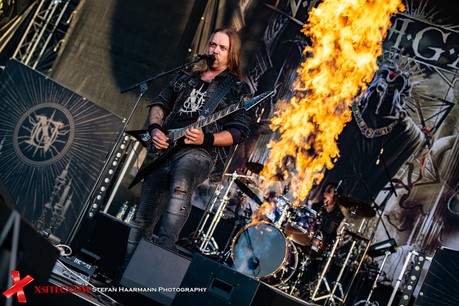 Weiter geht es auf der WACKINGER-Stage, auf der NOTHGARD ein heißes Spektakel für die Fans vorbereitet haben. Dort wird eine wahre Feuerorgie entfacht, zudem gibt es schmackhaften Melodic Death Metal. Während der einzelnen Feuerstöße hat man manchmal das Gefühl, die Band wäre selbst überrascht, wie knapp die Flammen neben ihnen emporlodern. Ganz starker Tobak.