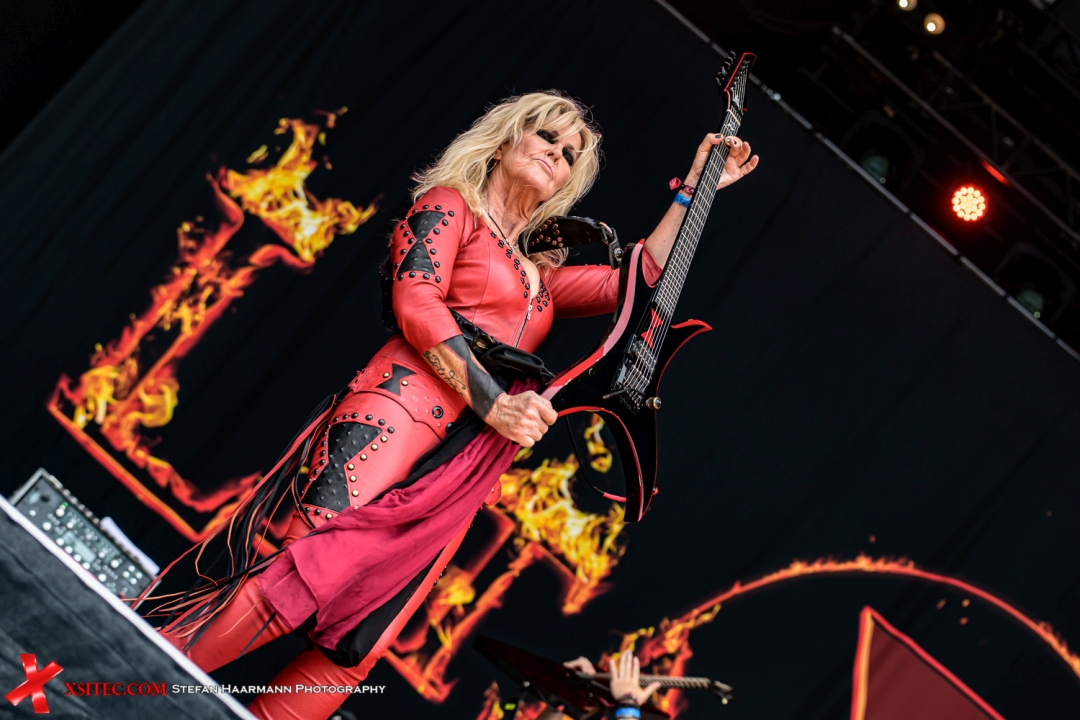LITA FORD nicht als Ikone zu bezeichnen, kommt schon fast einer Majestätsbeleidigung gleich. Die frühere RUNAWAYS-Gitarristin punktet mit Soloklassikern und souveräner Bühnenpräsenz, die immer noch dazu angetan ist, die Fans in ihren Bann zu ziehen. „Kiss Me Deadly“ beweist, dass Hair-Metal-Hymnen selbst im norddeutschen Morast strahlen, zudem gibt es mit ihrem Ohrwurm „Close My Eyes Forever“ einen weiteren Gänsehautmoment, denn dieser Song wird selbstredend dem kürzlich verstorbenen OZZY OSBOURNE gewidmet. Dass hier vor der Bühne einige Fans Tränen in den Augen haben, ist trotz des immerwährenden Nieselregens deutlich zu erkennen.