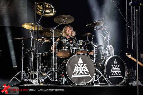 Im Inneren des Zelts gibt es reichlich Platz, der allerdings mit Auftauchen der Ruhrgebiets-Metaller AXXIS schlagartig knapp wird. Die Band um Mastermind Bernhard Weiss feierte etwas später im Jahr 2019 ihren 30. Geburtstag, Jahre, die der Energie und der Durchschlagskraft der Combo allerdings nichts anhaben konnten.